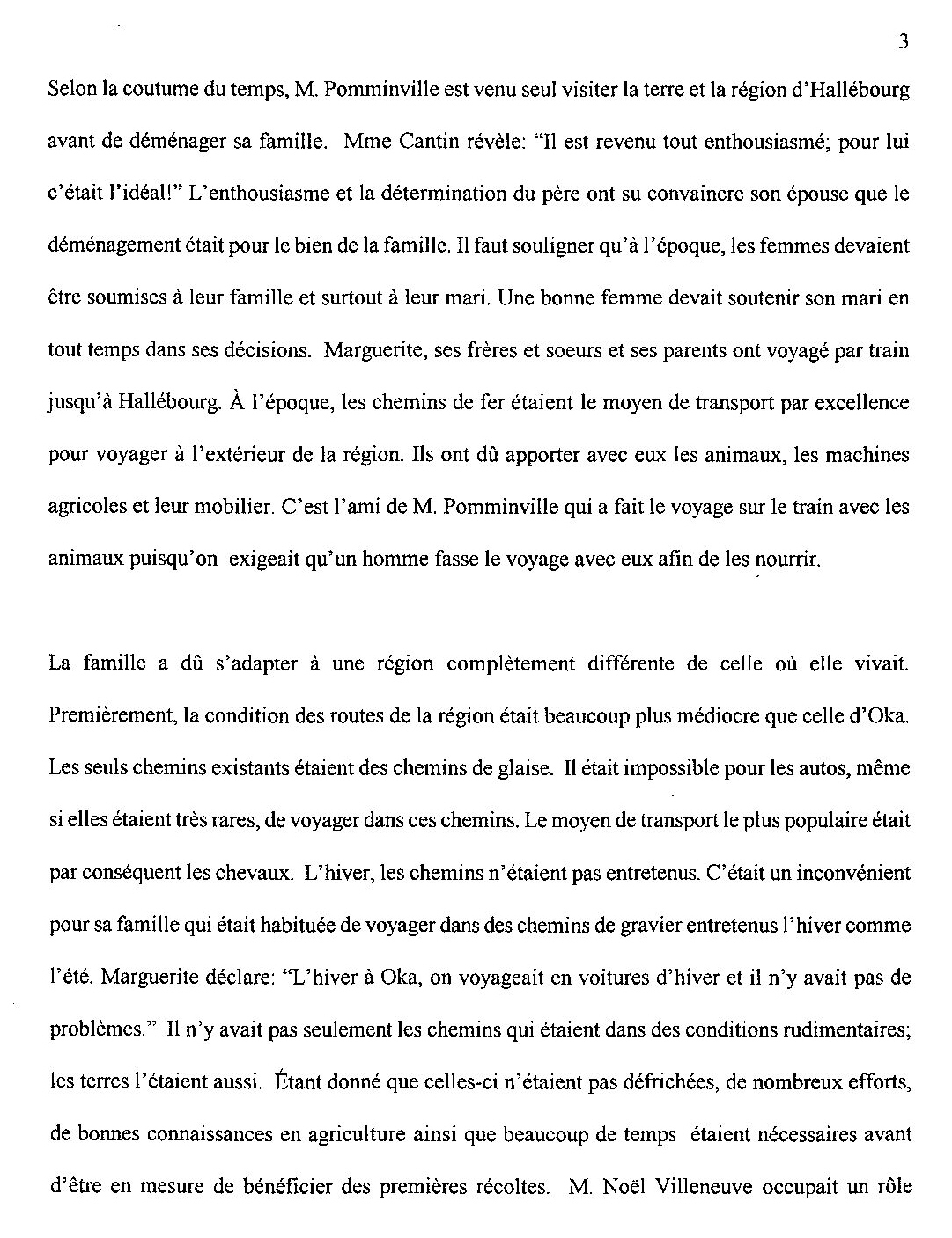 Travail de recherche sur le vécu de Mme Marguerite Cantin, par Josée Thibodeau.