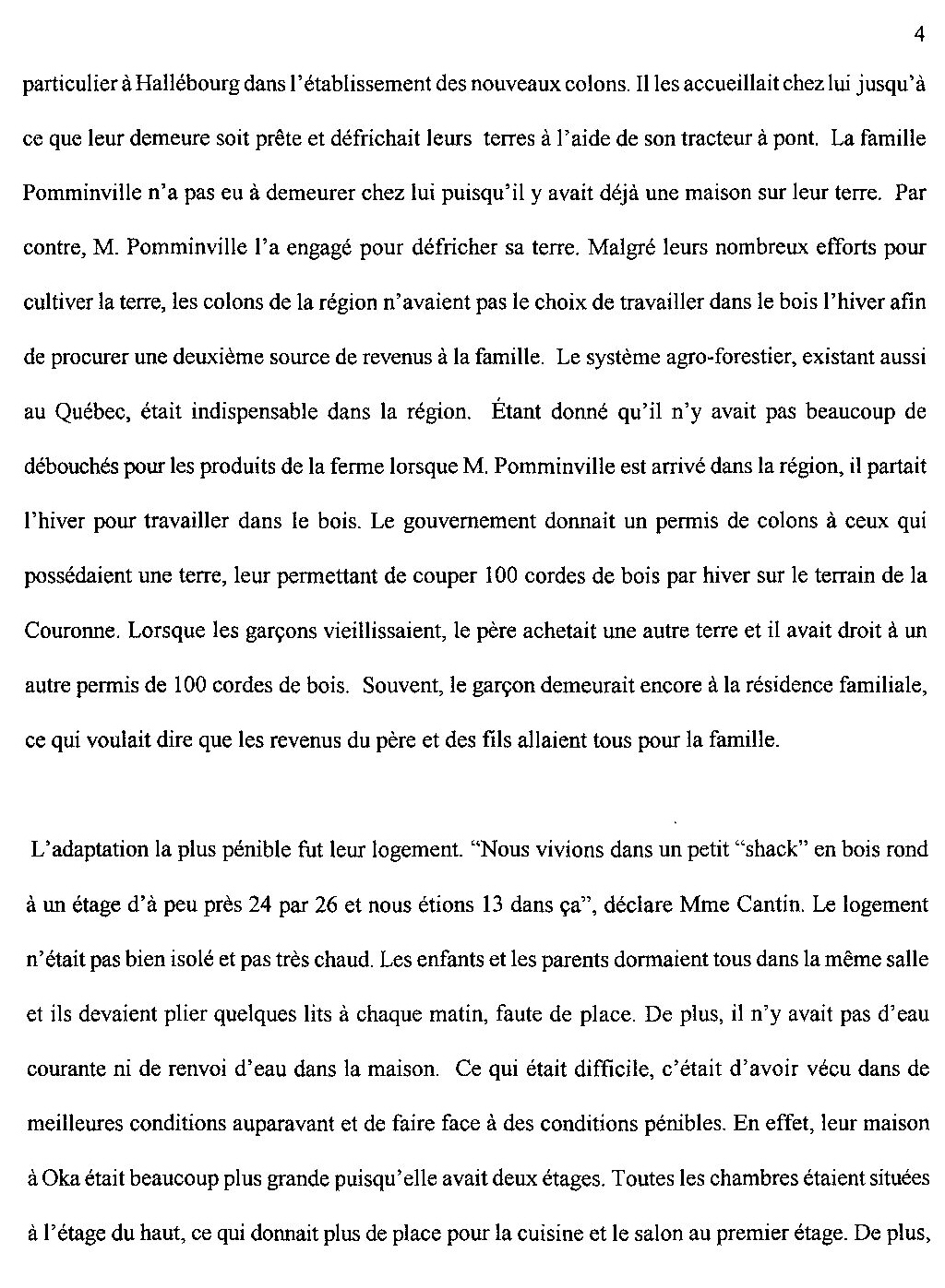 Travail de recherche sur le vécu de Mme Marguerite Cantin, par Josée Thibodeau.