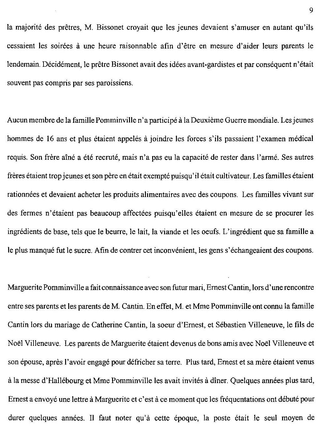 Travail de recherche sur le vécu de Mme Marguerite Cantin, par Josée Thibodeau.
