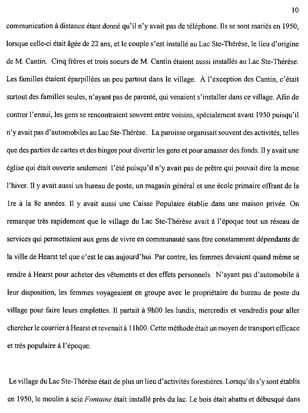 Travail de recherche sur le vécu de Mme Marguerite Cantin, par Josée Thibodeau.