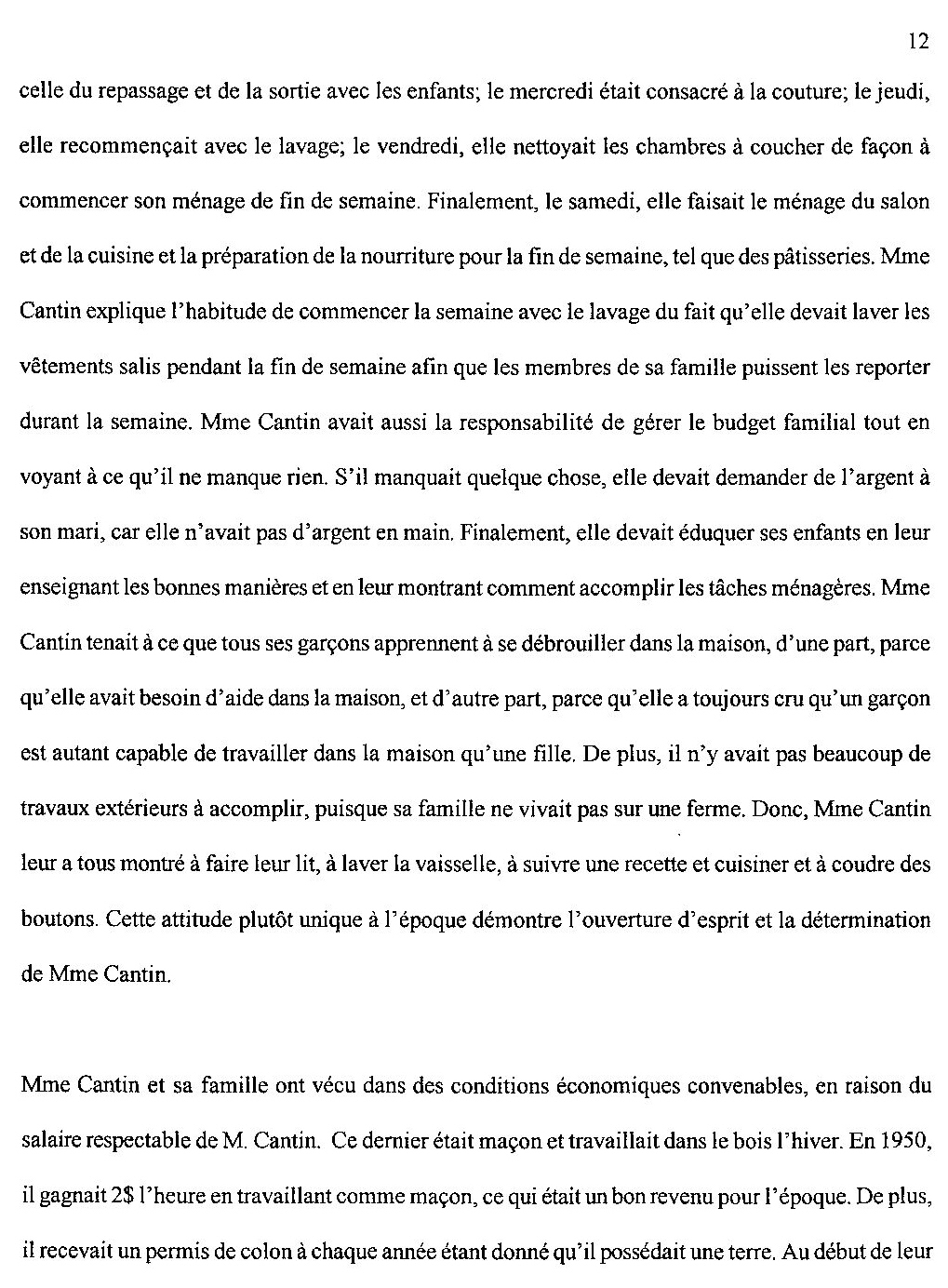Travail de recherche sur le vécu de Mme Marguerite Cantin, par Josée Thibodeau.