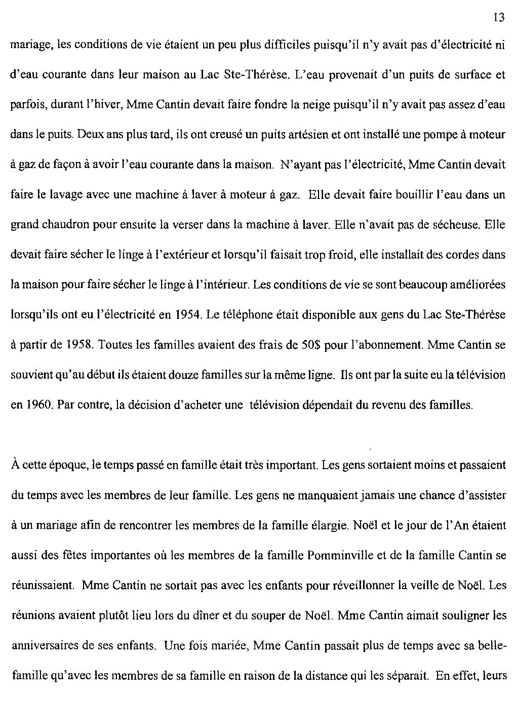 Travail de recherche sur le vécu de Mme Marguerite Cantin, par Josée Thibodeau.