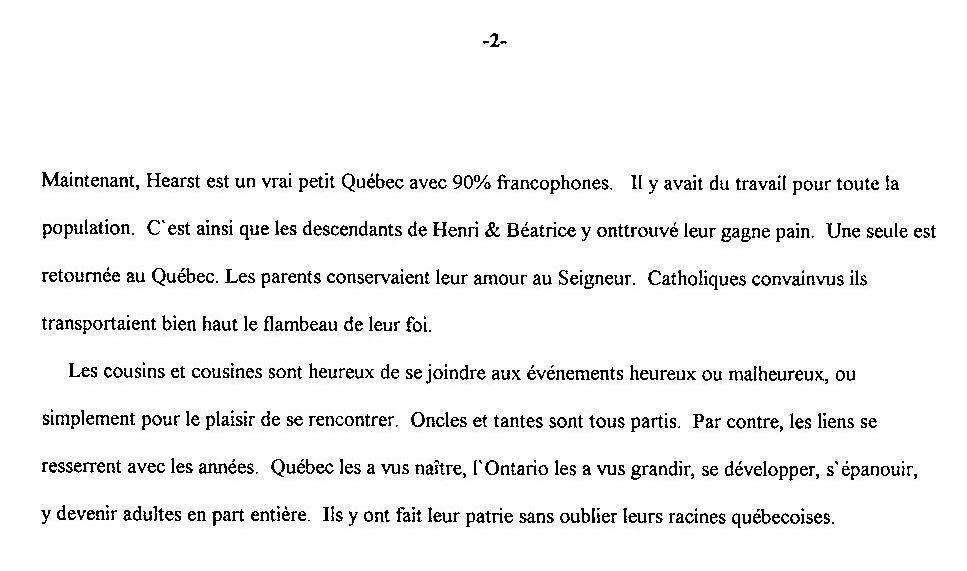 Travail de recherche sur le vécu de Mme Marguerite Cantin, par Josée Thibodeau.
