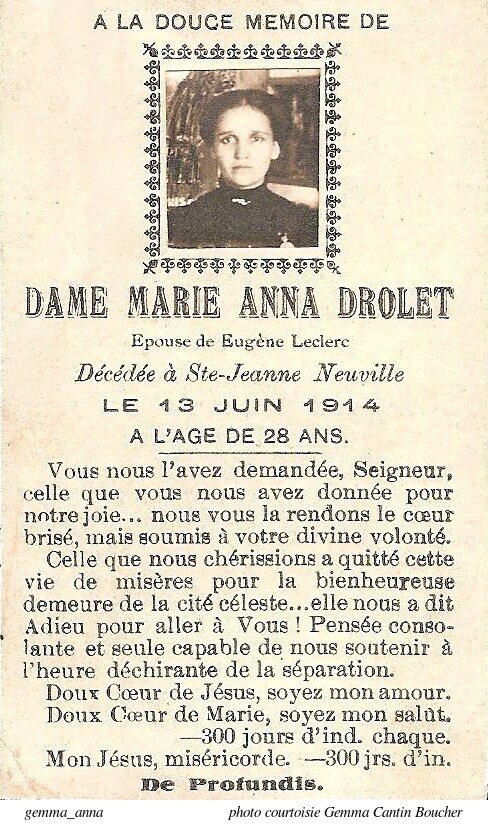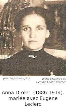 Anna: née en 1886. A épousée Eugène Leclerc. Elle est décédée le 13 juin, 1914.