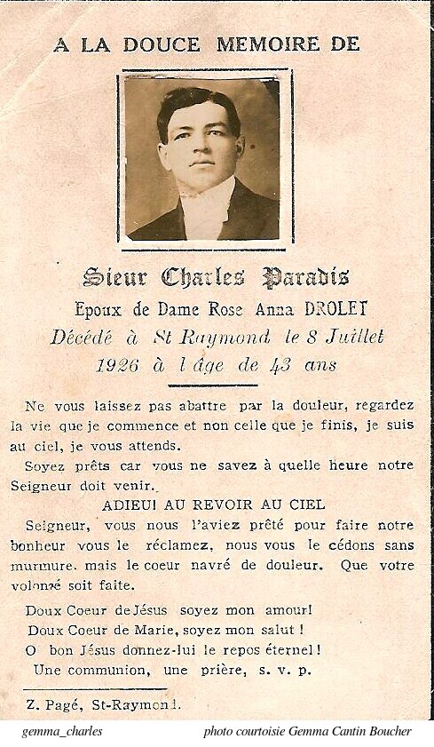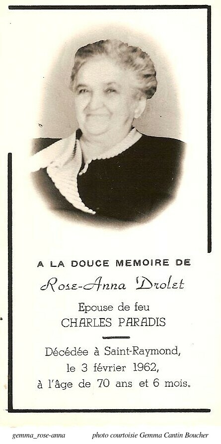 Rose-Anna: née en 1892. Mariée avec Charles Paradis. Décédée le 3 février, 1962.