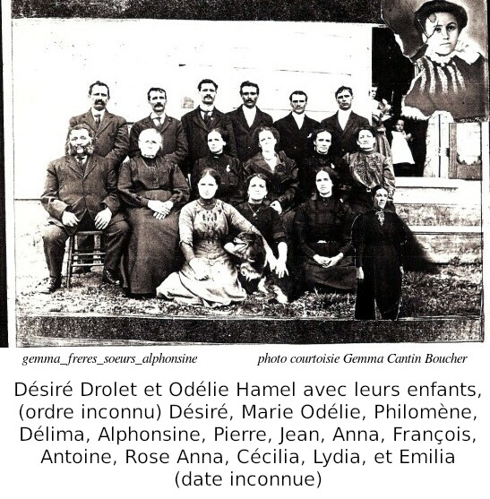 Voici la liste détaillée de la famille de Désiré Drolet, père d'Alphonsine,celle qui a amenée ma famille dans le nord de l'Ontario.