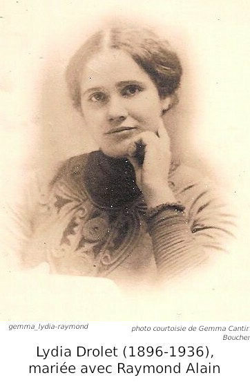 Lydia: née en 1896. Mariée avec Raymond Alain. Décédée le 14 octobre, 1936.