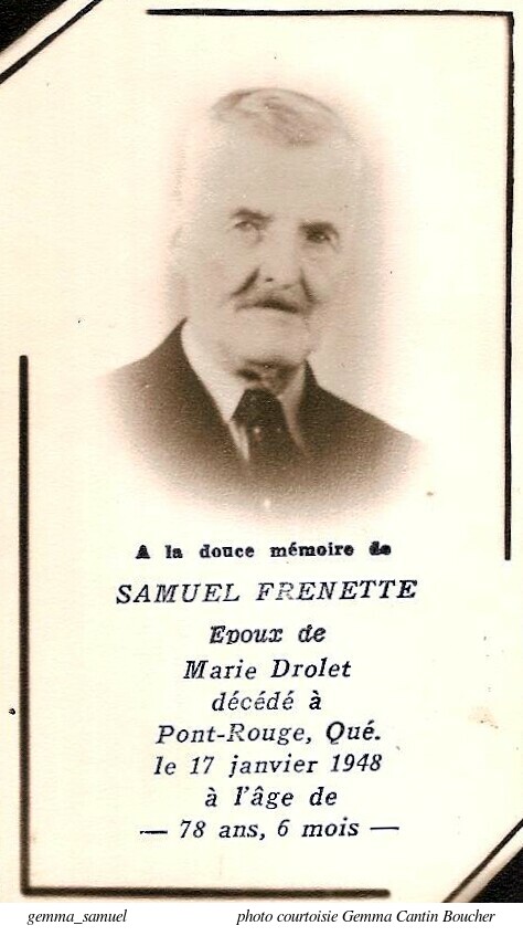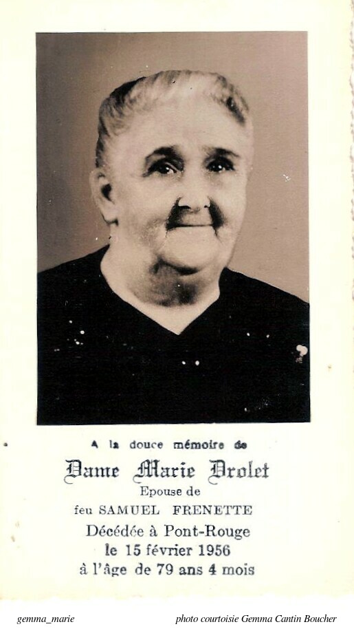 Marie: née en octobre, 1876. Mariée avec Samuel Frenette. Décédée le 15 février, 1956.