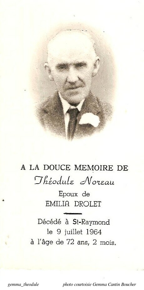 Emilia: née en 1897. Mariée avec Théodule Noreau. Décédée le 9 juillet, 1964.