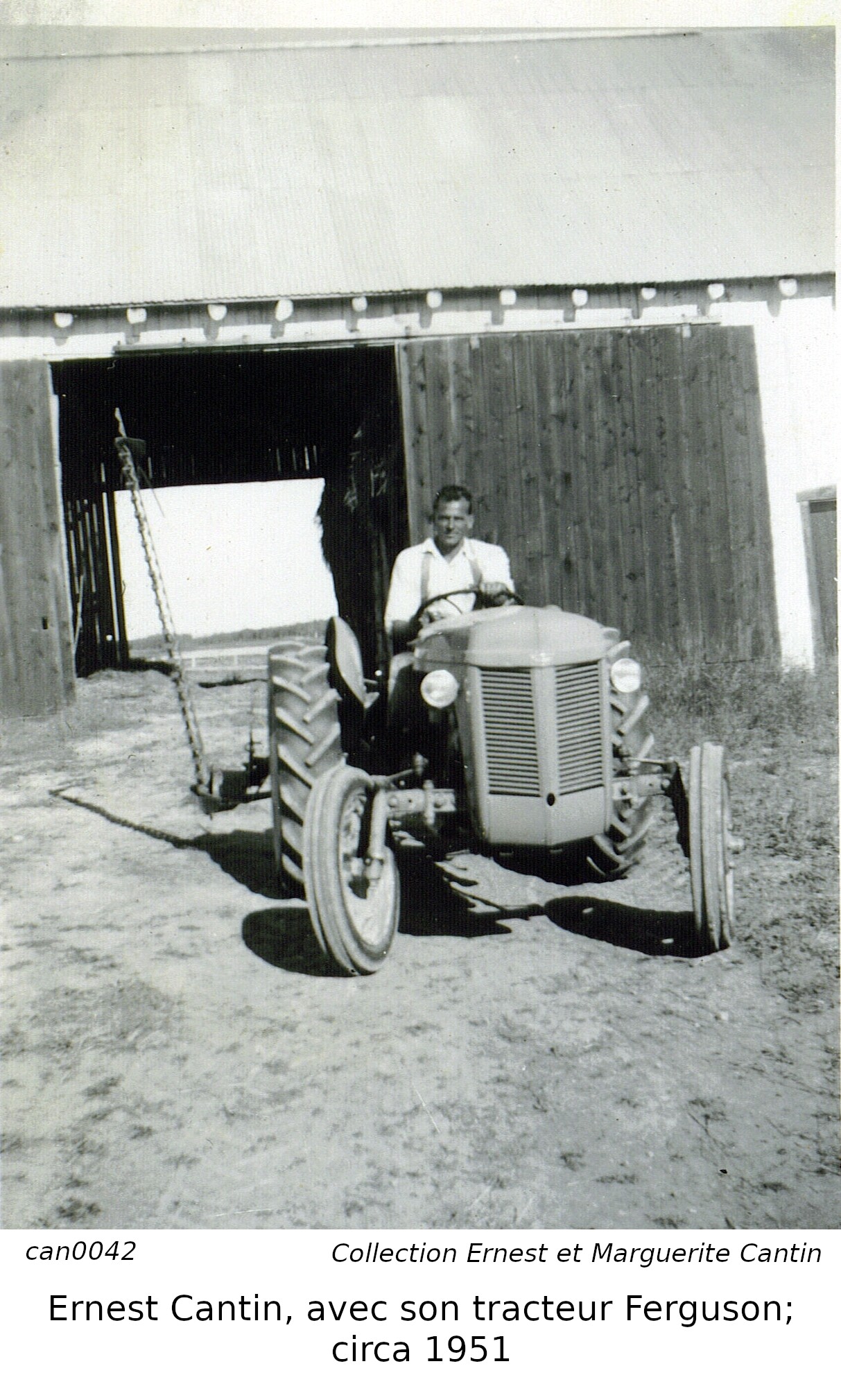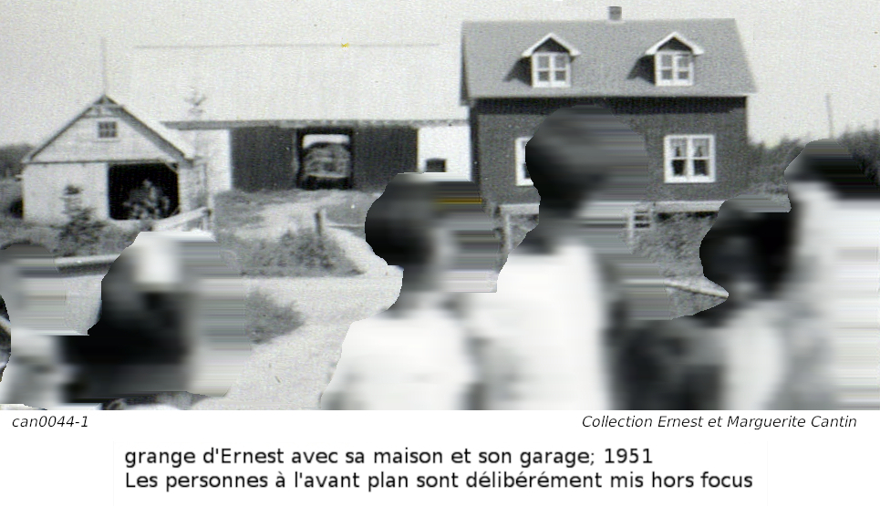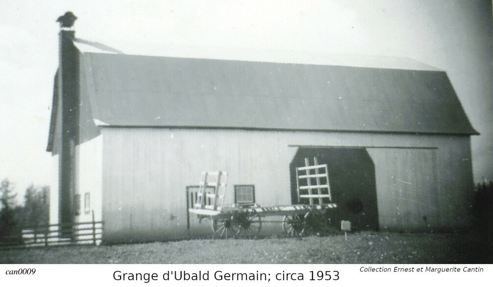 Nous publions aussi deux photos, dont l'arrière-plan sont des granges construite sur les lopins de terres pour Jean Baptiste, et pour Ernest. Une troisième et quatrième est celle d'Ubald Germain. Nous avons modifiés les photos pour mettre l'emphase sur les granges, et non sur leur contenu original: