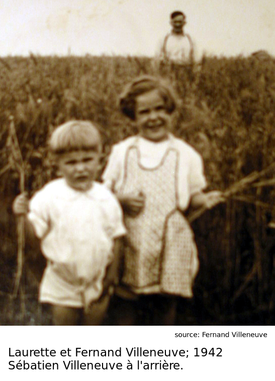 Après son mariage, Catherine a demeurée à Hallébourg. Elle était voisine d'Henri Pominville et Béatrice Gratton. Elle est devenue veuve alors que son troisième enfant n'avait même pas un an. La photo de Catherine en juillet 1985 fut prise lors du 25ième anniversaire de mariage de Laurette (sa fille) à Clément Groleau. La photo de Sébastien Villeneuve n'est pas datée. Merci à Fernand de me la faire parvenir (ainsi que plusieurs autres photos). Sébastien était le frère de Noël Villeneuve, bien connu des gens de la région, surtout d'Hallébourg. Il est décédé d'une insuffisance cardiaque, à l'âge de 30 ans et 9 mois... |