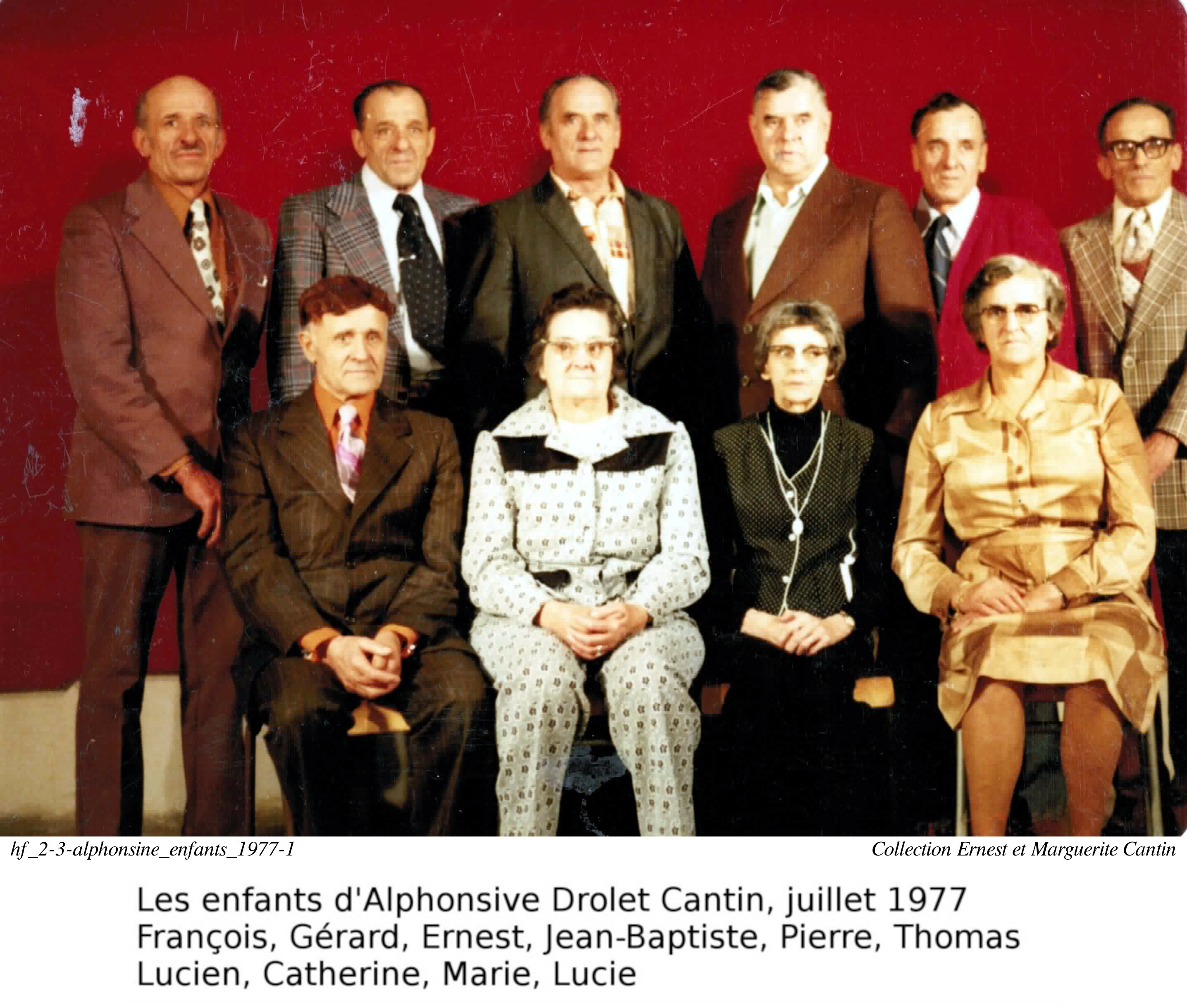 Ce qui suit sont les familles des enfants d'Alphonsine Drolet et Ernest Cantin, la troisième générations de Cantin dans la région de Hearst.