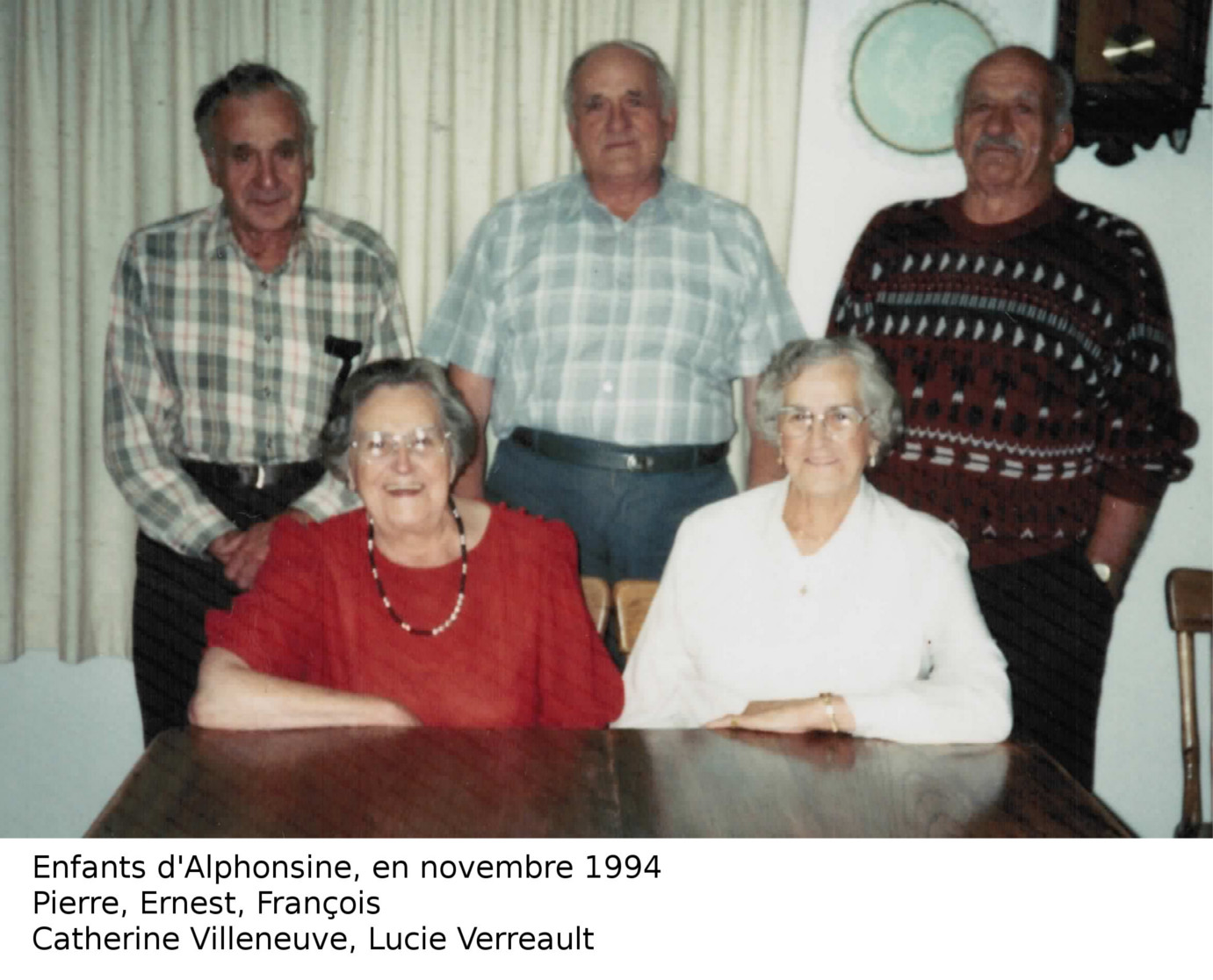 Par contre, pour satisfaire votre curiosité, vous pouvez examiner la liste des descendants d'Ernest et d'Alphonsine, gracieuseté de Gemma Cantin Boucher. La dernière mise-à-jour générale fut effectuée en 2016.