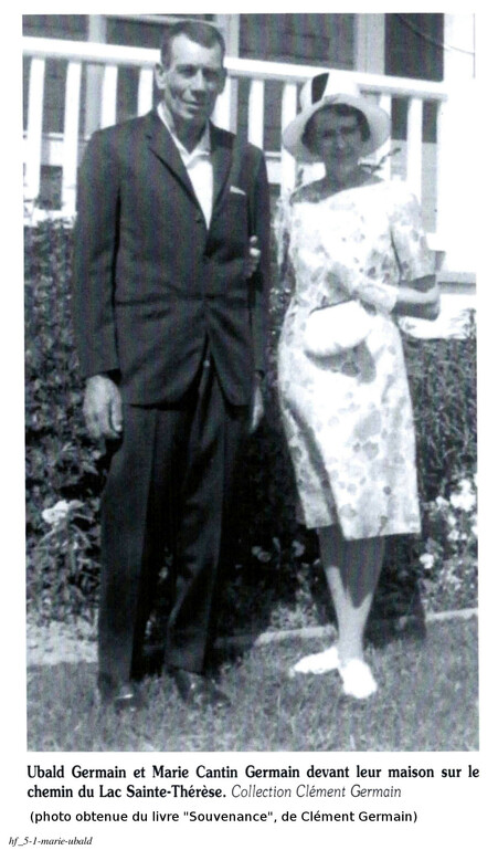 Petite tangeante: Bruno (fils de Marie et Ubald) me dit que mon père et son père ont buchés ensemble quelques hiver. Au début, ils faisaient scier leur bois au moulin a Forcier (le moulin fut mentionné dans la section des moulins du lac Ste-Thérèse); par la suite, le moulin à Fontaine du Lac a scier leur bois. Marie a une belle plume; elle écrit bien. Nous sommes reconnaissant de son témoingnage, des ses écrits, sur le déménagement de sa famille de Québec vers l'Ontario. Elle nous a aussi léguée quelques légendes, qu'elle a écrit afin de les préserver; (version PDF) disponible; merci à Gemma Cantin Boucher pour nous les faire parvenir. |
