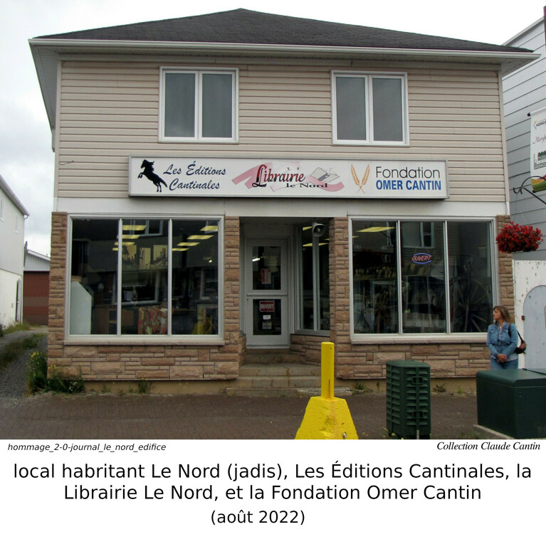 En 1988, alors qu'Omer prenait contrôle des actions du journal avec Raymond Alary et Louis Corbeil, il fonde la librairie Le Nord. https://www.alq.qc.ca/librairies/lenordalq/ a une bonne description de la librairie, écrite circa 2010, que j'ai abrégée: Fondée en 1988 par Omer Cantin, la Librairie Le Nord sise au 813, rue George à Hearst a connu des débuts plutôt modestes. Logée pendant quelques années dans un petit coin des locaux utilisés par le journal Le Nord au 905, rue George, elle est vite devenue la référence en matière de produits culturels francophones tels que livres et musique francophone pour tout le Nord de l'Ontario. Neuf ans après sa fondation, Omer Cantin voit la croissance de sa librairie partir en accélérer. Les francophones des quatre coins du Nord de l'Ontario font appel aux services de la Librairie Le Nord pour leurs besoins en produits francophone. En 1997, comme l'espace alloué par le journal Le Nord est nettement insuffisant face à ses besoins toujours grandissants, la Librairie Le Nord décide de faire l'acquisition de ses propres locaux. Depuis, elle jouit d'un superficie plus que décente pour l'étalage des produits qu'elle offre. Sa spécialité est sans contredit le livre mais aussi de diffuser les produits des artistes de l'Ontario français qu'ils soient écrivains, chanteurs, musiciens ou cinéastes tout en réservant une place importante aux meilleurs vendeurs et aux nouveautés de partout ailleurs dans le monde francophone. Forte de ses 22 années d'expérience [NDLR: maintenant 33 ans], la Librairie Le Nord est bien plus qu'un magasin de livres de tout genre. Outre les livres neufs, la Libraire Le Nord accorde une importance aux livres d'occasion anciens et nouveaux. Plusieurs titres sont disponibles sous demandes spéciales dont certains sont très rares ou encore épuisés. Au niveau de la diffusion de musique francophone, la Librairie Le Nord n'a rien à envier à personne. Elle compte un inventaire important de tout ce qui ce produit à l'échelle du Canada français.