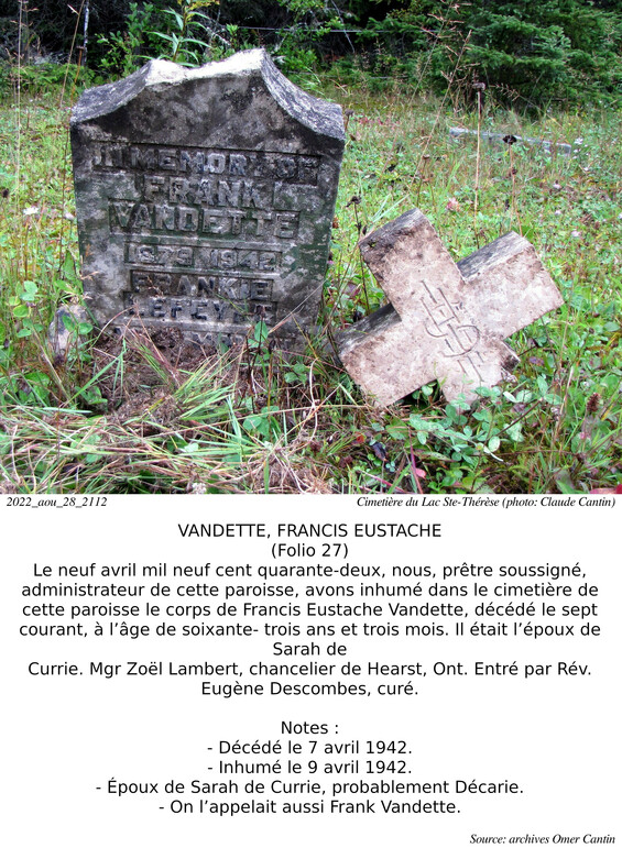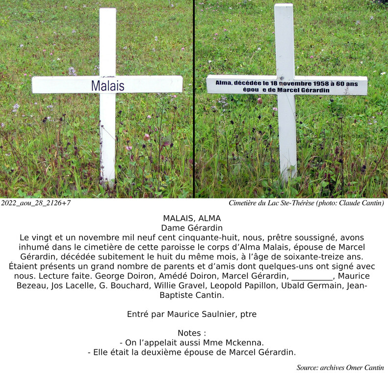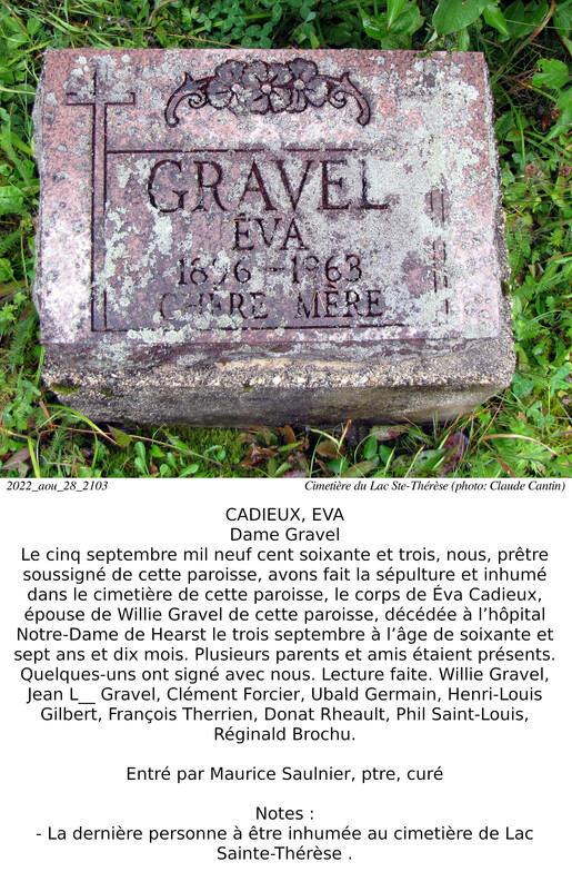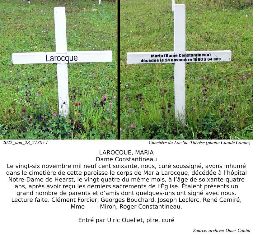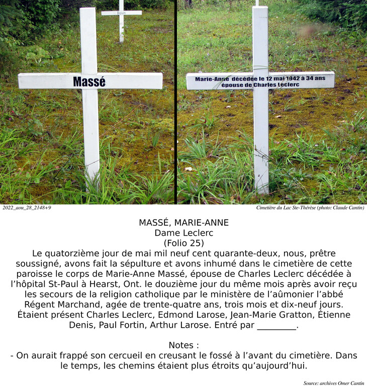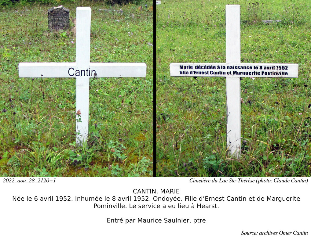 Aussi un remerciement spécial à Omer Cantin qui a fait la recherche, et m'a donné les informations concernant les personnes enterrées dans ce cimetière.