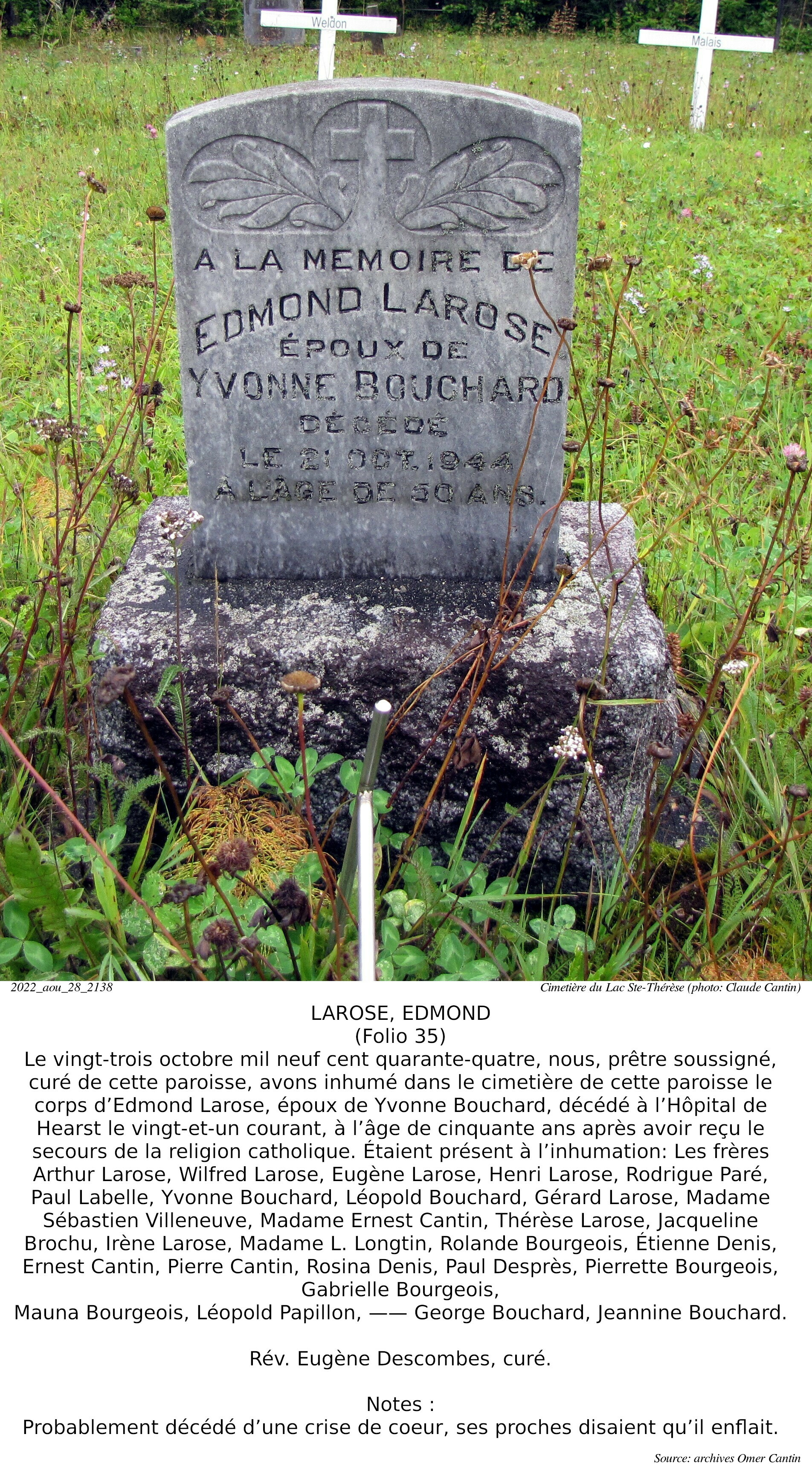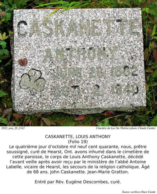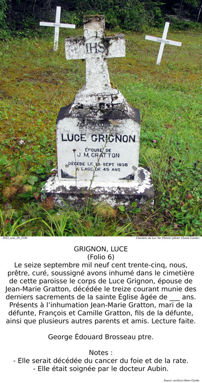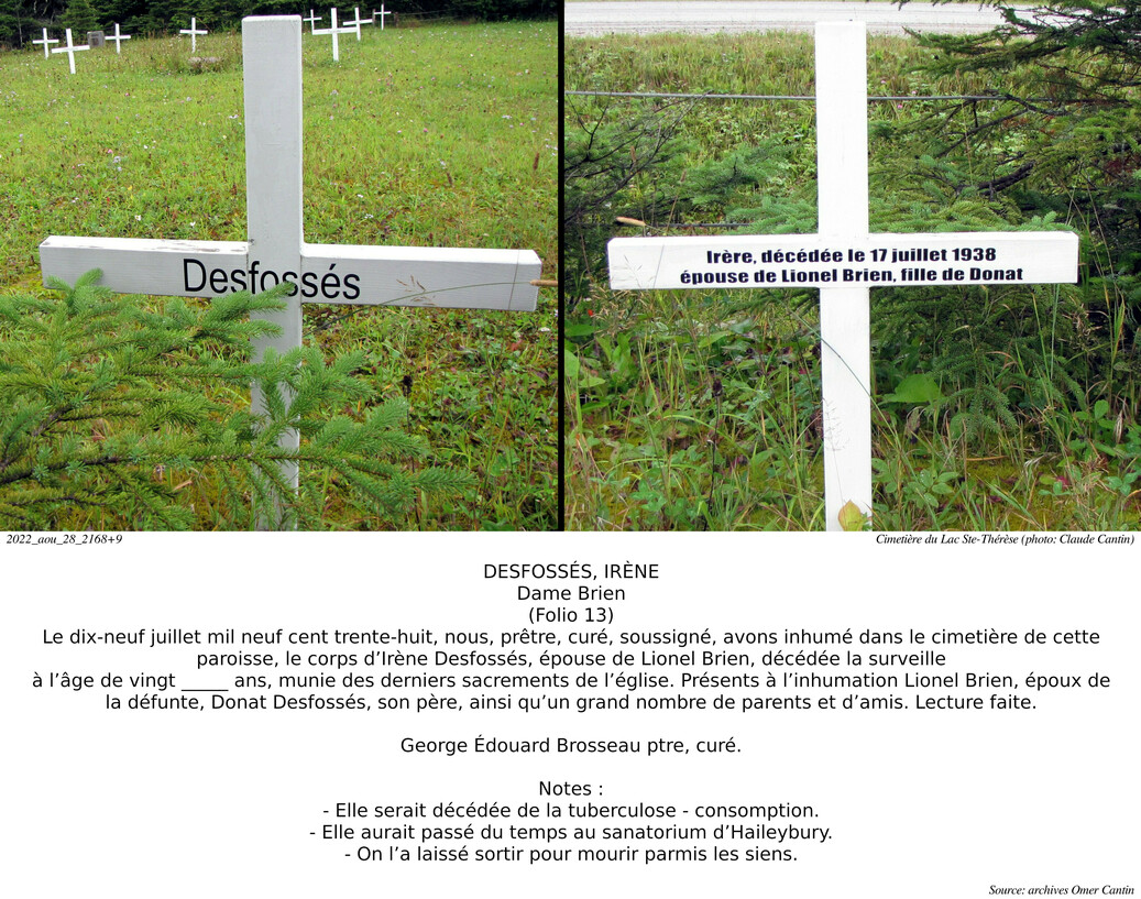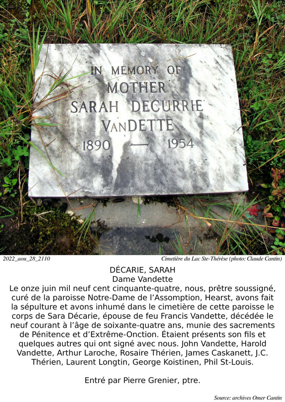 Aussi un remerciement spécial à Omer Cantin qui a fait la recherche, et m'a donné les informations concernant les personnes enterrées dans ce cimetière.
