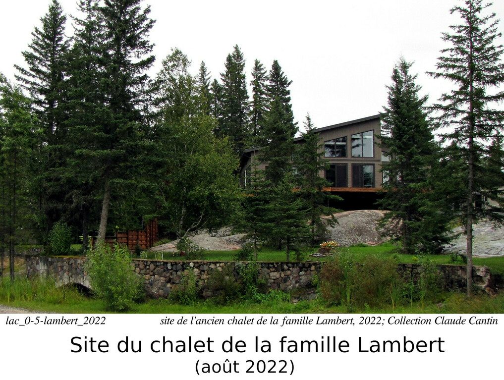 Le premier terrain qu'ils ont achetés était où est maintenant Expert Garage, au coin sud-est des routes 11 et 583 nord. Peu après, ils ont achetés la terre au bord du lac. M. Lambert était habile de construction (c'était son métier), et a construit la maison, que nous appelions "le chalet de Mgr Lambert". Cette terre commençait en face du magasin du village et se rendait au cimetière à l'est du magasin, pour ensuite continuer vers le lac (i.e. vers le nord), comprenant le côté sud est du lac Ste-Thérèse.