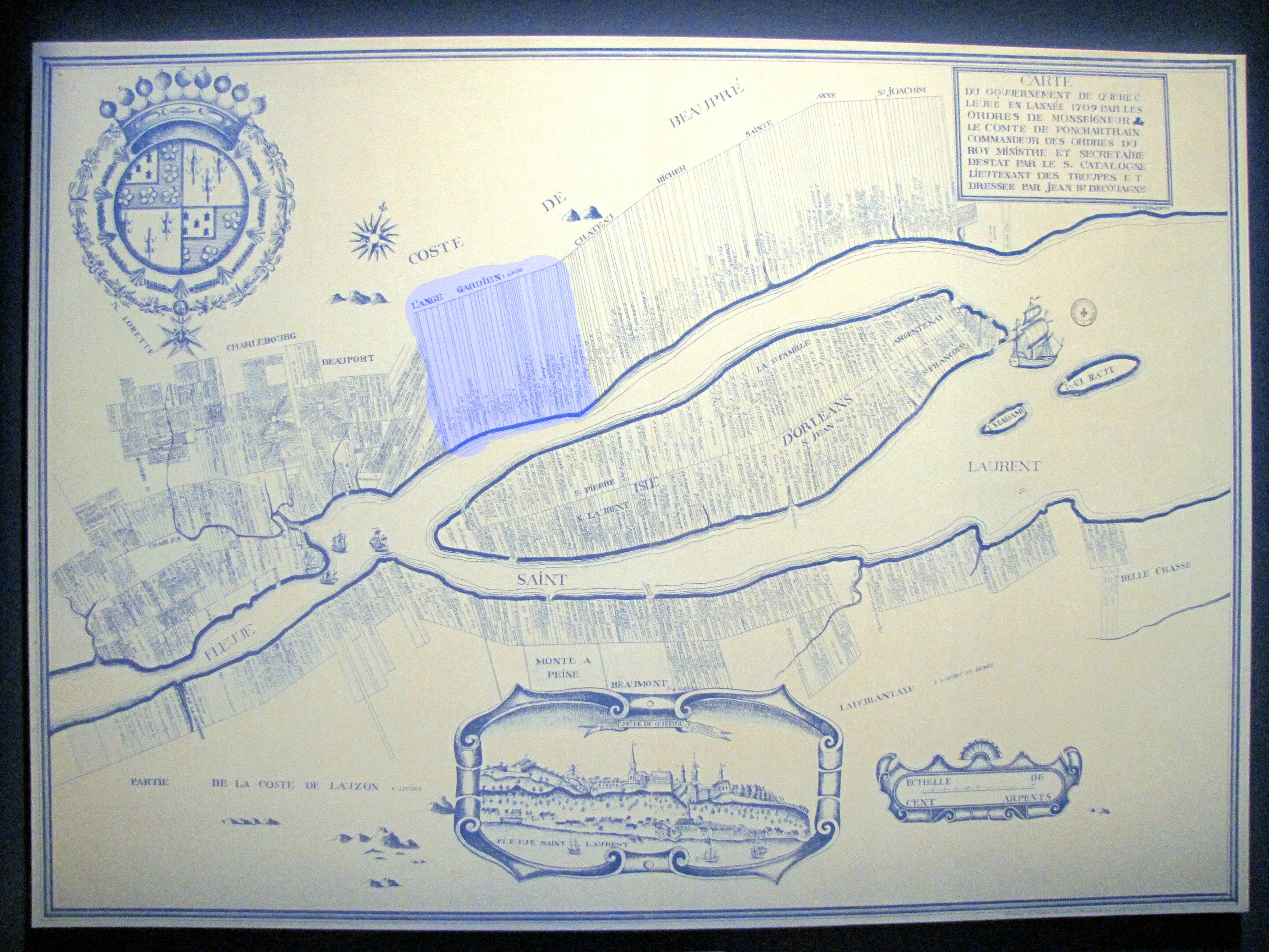Si vous allez visiter le musée canadien de l'histoire à Gatineau (Ottawa), vous y remarquerez peut-être une grande carte démontrant le début de la colonisation en Nouvelle-France, plus précisément la région de la ville de Québec.