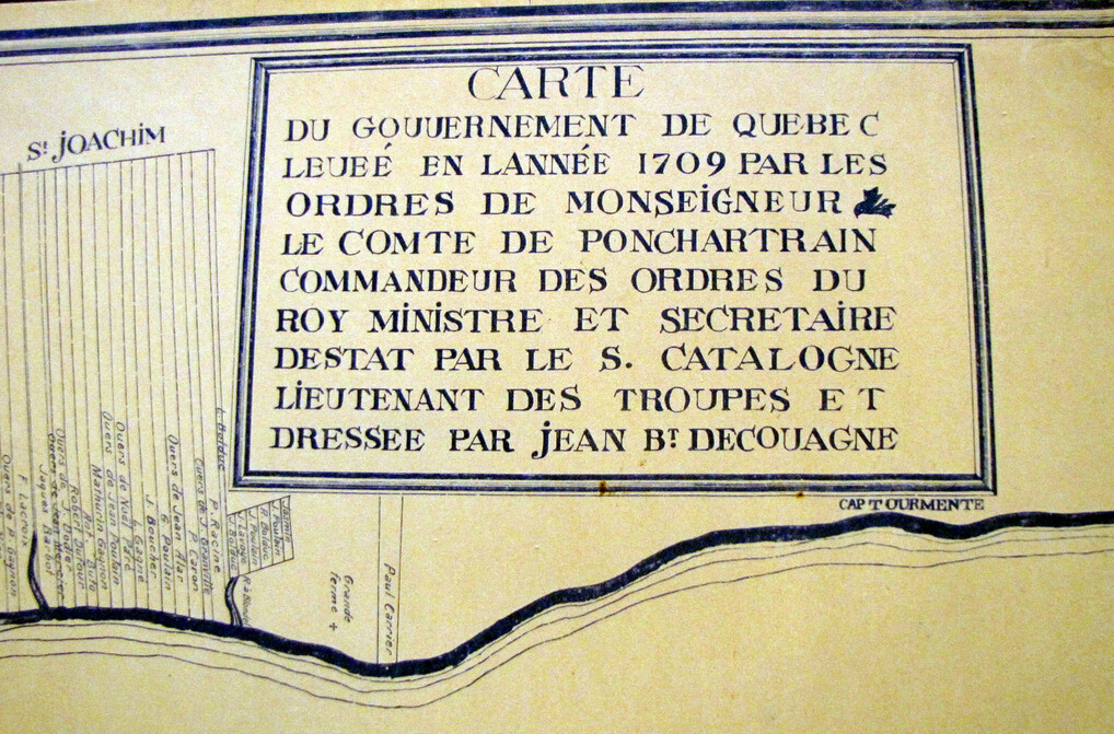 Cette carte inclue le nom des propriétaires des lots de la région de Québec, en 1709.