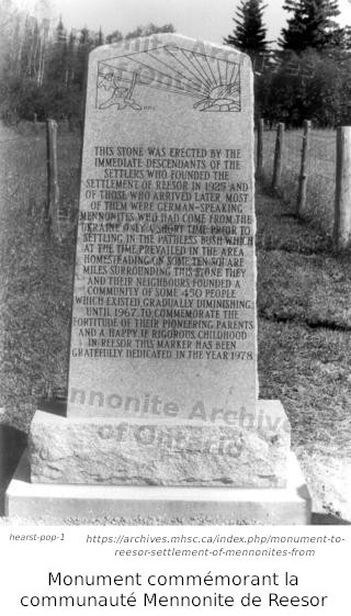 Il est même arrivé que le gouvernement établisse une zone où, pour un certain nombres d'années, un groupe ethnique spécifique avait la monopoly sur colonisation. Dans son livre "Pioneer Parners at St. Paul's", Margaret Arkinstall dédie un chapitre entier sur l'établissement de la communauté ethnique Mennonite à Reesor, en 1925. Ces mennonites, de langue Allemande, fuyaient la Russie, peut après la tombée du régime tsariste suivant la première guerre mondiale. Ils sont arrivés à Reesor alors qu'il n'y avait aucun chemin pour s'y rendre. Seul le train y passait. En passant... le nom de Reesor nous vient de Thomas Reesor, un ministre et leader d'une communauté Mennonite du sud de l'Ontario (Margaret Arkinstall mentionne Pickering, alors que le site web sous-mentionné mentionne Scarborough, et la page Wikipedia parle de Markham...). En plus de Mennonites, un certains nombres de Finlandais et de canadiens français y étaient aussi établis. Ces pionniers firent donc parti de la première vague de colonisation. Malheureusement, 50 ans plus tard, en 1975, il ne restait (à Reesor) qu'un seul descendant de cette communauté mennonite... La page web https://www.ghosttownpix.com/ontario/towns/reesor.html donne aussi certains autres détails sur Reesor. Je mentionnerai de nouveau cette communauté lorsque nous parlerons des écoles de la région.