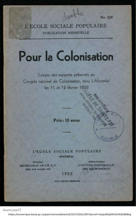 La Voix NationaleDepuis le début des années 1920, les prêtres colonisateurs de la province de Québec encourageaient les fermiers à aller s'installer non seulement au nord-ouest québécois, mais aussi au nord-est de l'Ontario. Leur but était de prendre "contrôle" du nord de l'Ontario avant que les anglais ne le fasse.