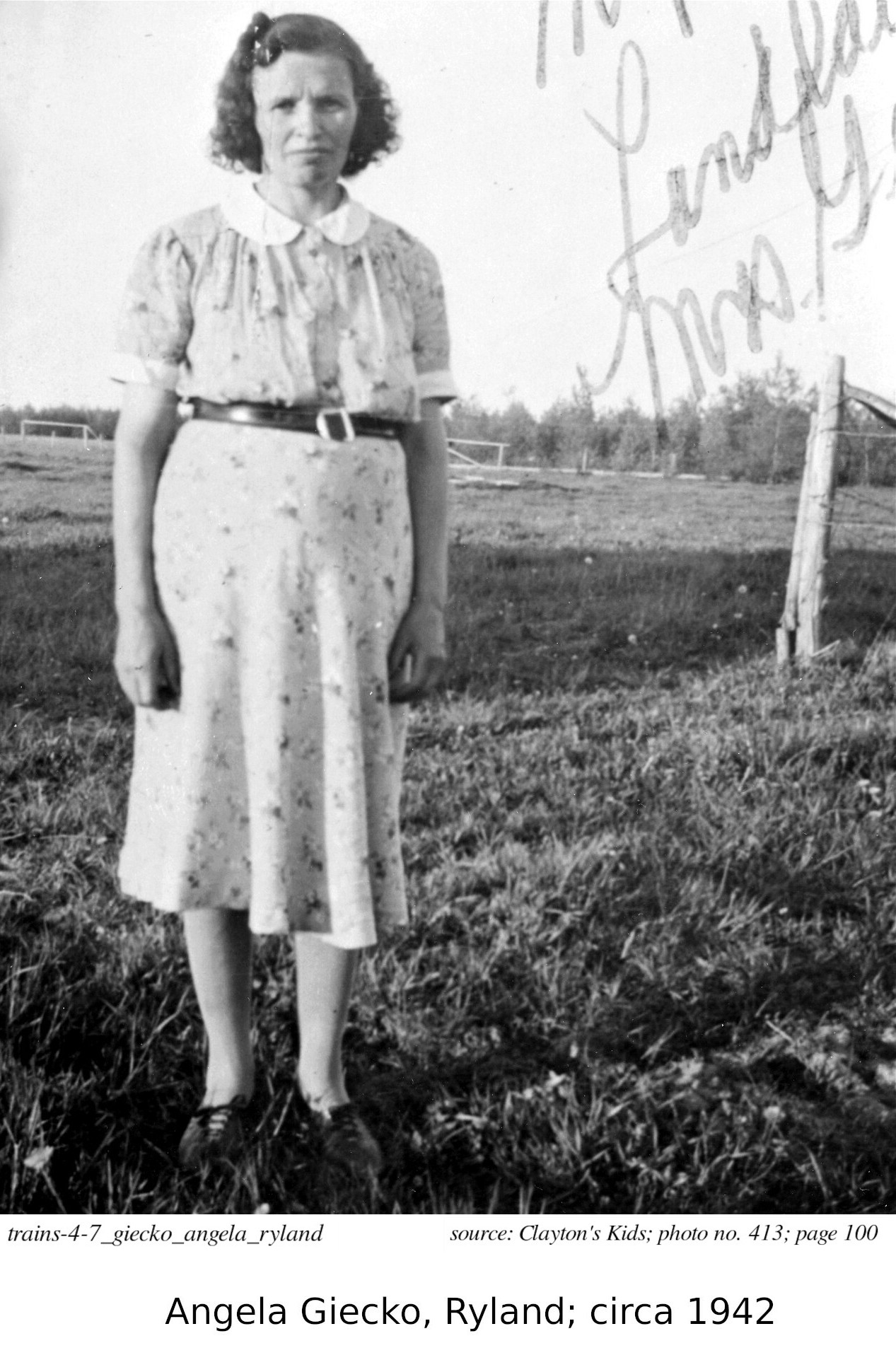 La première photo illustre bien ce que je viens de décrire: immigrant ukranien arrivant au Canada en 1927, John Giecko se trouve un emploi comme membre de l'équipe de maintenance pour la section du chemin de fer traversant Ryland. John a quitté son village natal, Kulno, aujourd'hui en Pologne, cherchant une meilleure vie: le peuple ukranien n'avait pas de pays, souffrait de discrimination, et était en général très pauvre. John est arrivé à Hearst en 1927; son épouse est arrivé 10 ans plus tard, en 1937. Son histoire est raconté dans le livre "Clayton's Kids", pages 99-103.