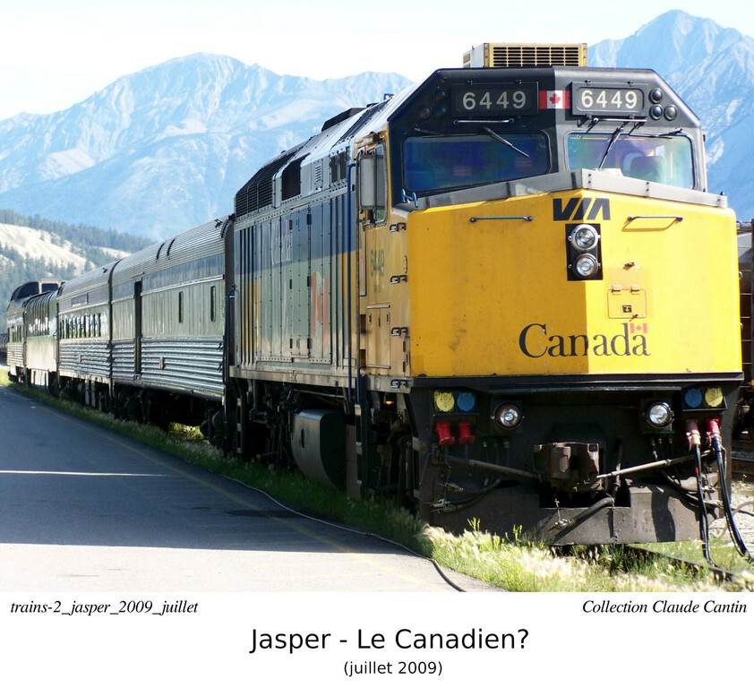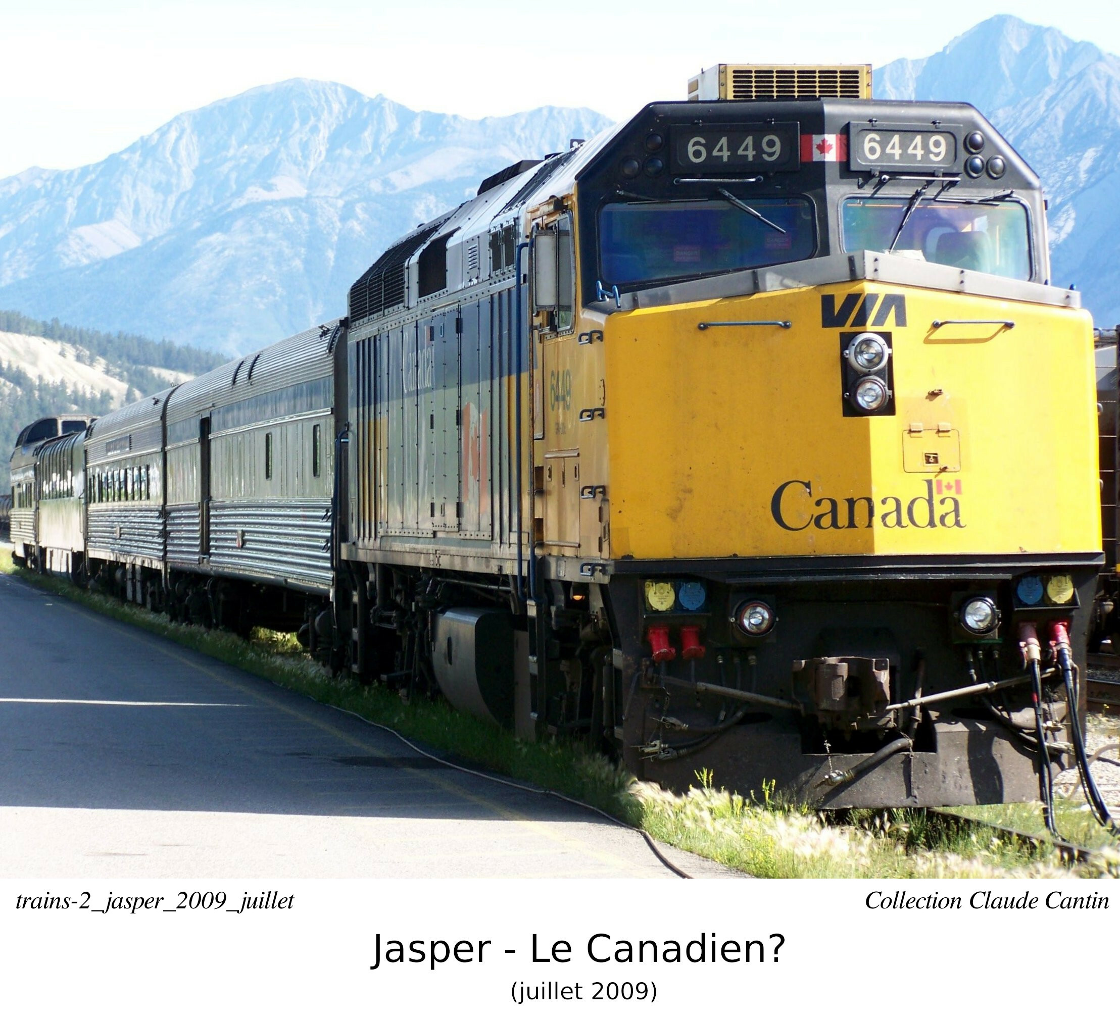 En arrivant à Revlestoke, nous avons eu la chance de voir venir un train de marchandise. Ce train était long de quelques kilomètres. Stationné à la gare de Jasper se trouvait ce que je crois être "le canadien", ce train passager qui offre le passage des rocheuses par voie ferroviaire.