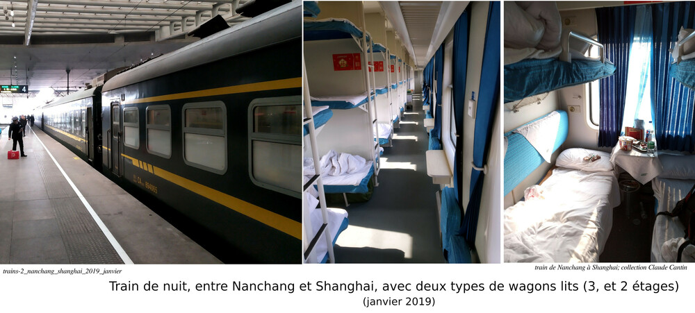 Le train entre Beijing et Tianjin était aussi un train à grande vitesse. Les quelques 130 kilomètres furent parcouruent en moins de 45 minutes. Par contre, le train entre Nanchang et Shanghai était un train plus "traditionel": il n'allait pas très vite, et s'arrêtait souvent dans une gare un certain montant de temps. Nous avions réservés deux lits; j'avais celui de bas, et mon garçon celui du haut (deux autres passagers étaient aussi dans notre chambre). Pour des lits plus "modiques", six personnes occupent la chambre (et les matelas sont moins épais).