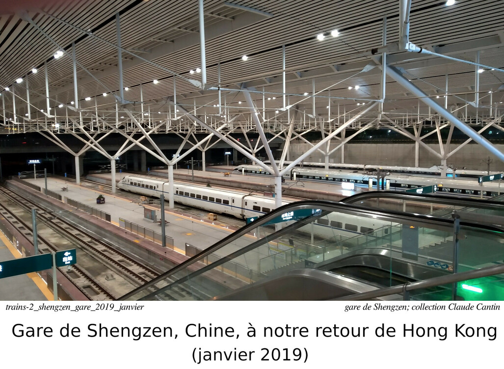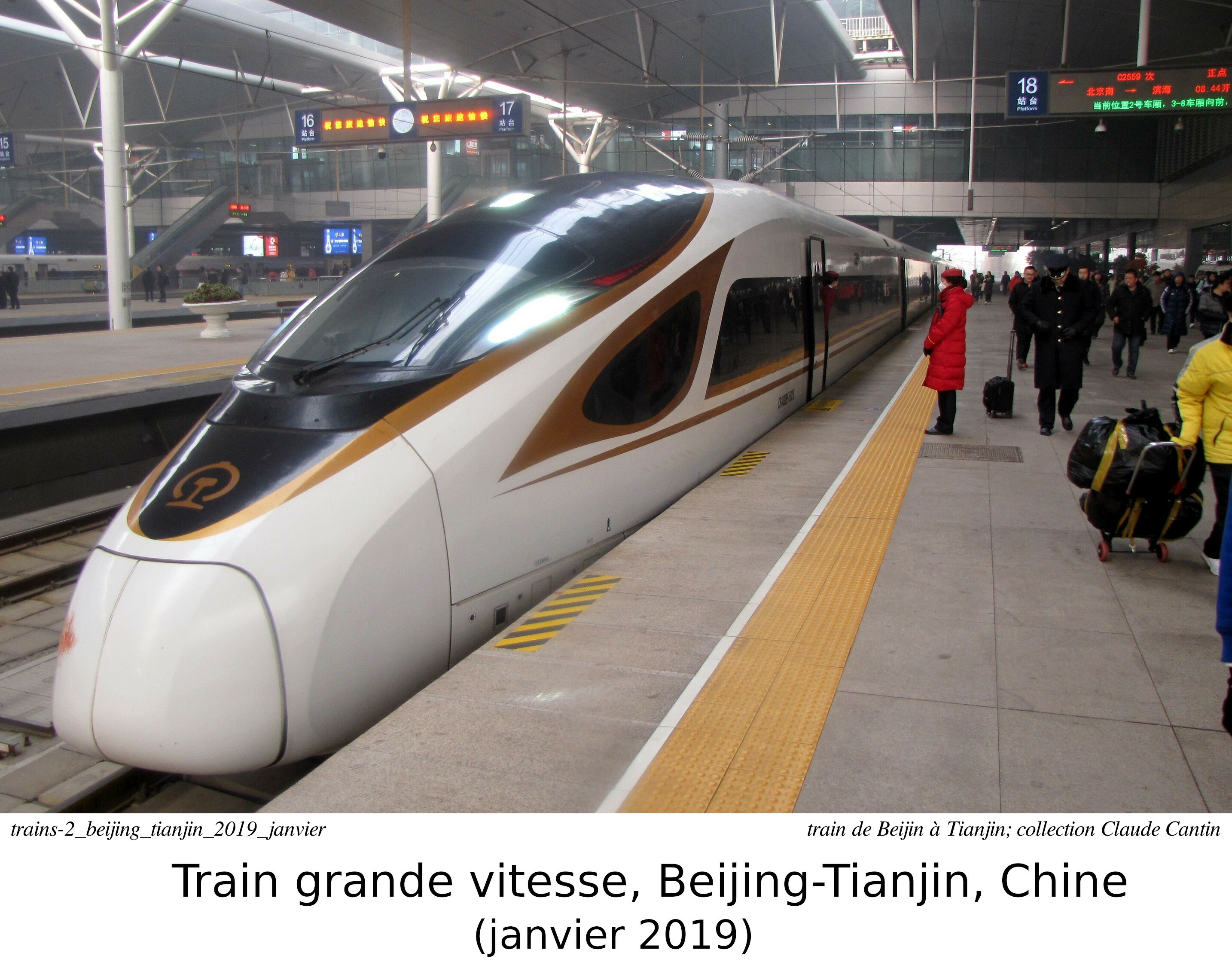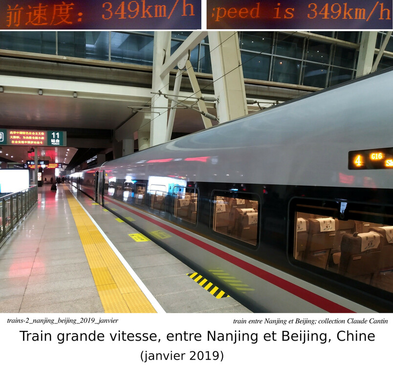 Enfin, en Asie, plus précisément en Chine, j'ai eu la chance, avec l'un des mes fils de prendre plusieurs trains, dont le train magnétique entre l'aéroport Pudong de Shanghai et le centre-ville (430 km/h). Ce train est le train magnétique commercial le plus rapide au monde. Malgré sa vitesse, il n'y avait aucune secousses; le trajet s'est fait très doucement. Le train entre Nanjing et Beijing nous offrait aussi une randonnée très douce, même si nous roulions à près de 350 km/h. La distance de 1000 kilomètres entre ces deux villes s'est fait en environ 3 heures, même si nous avons fait quelques arrêts.