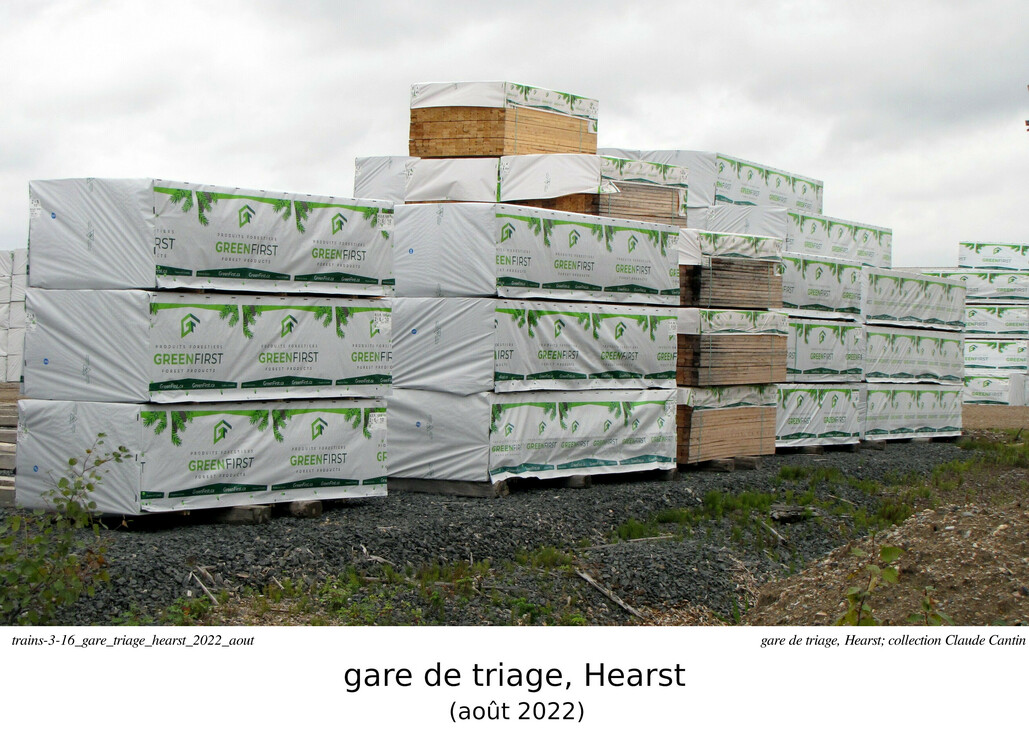 Plusieurs produits de l'usine GreenFirst, au côté de la gare de triage. Plusieurs de ces produits seront amenés par train partout au Canada et aux Etats-Unis.