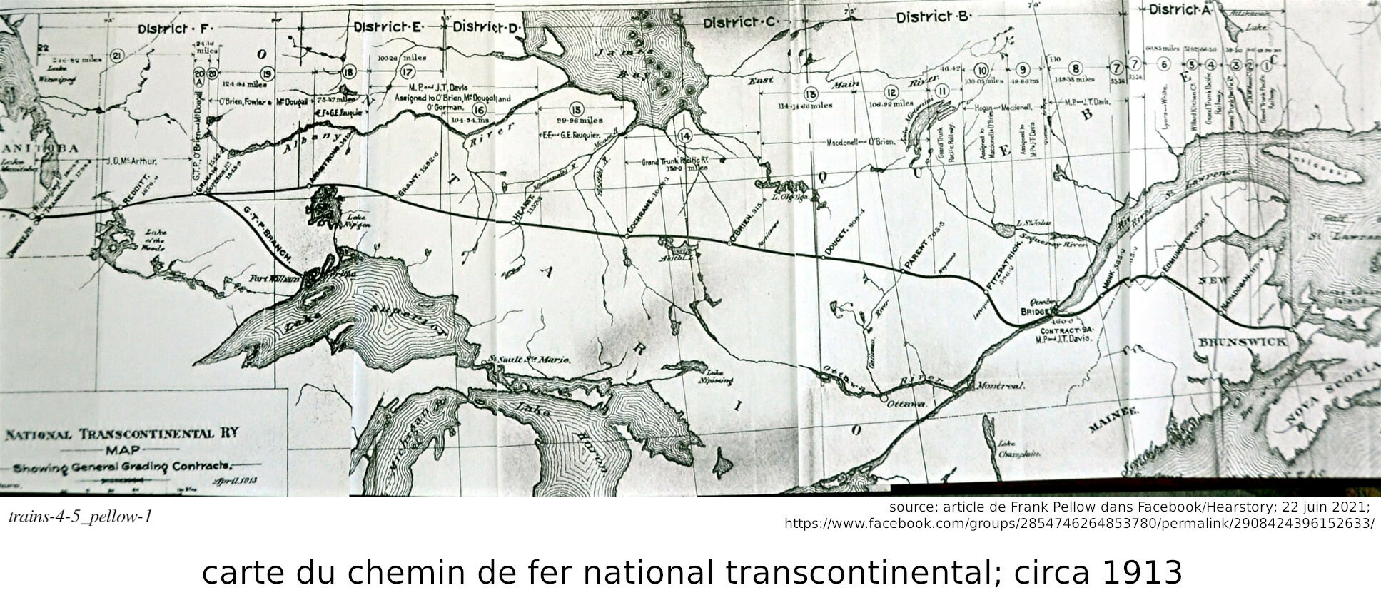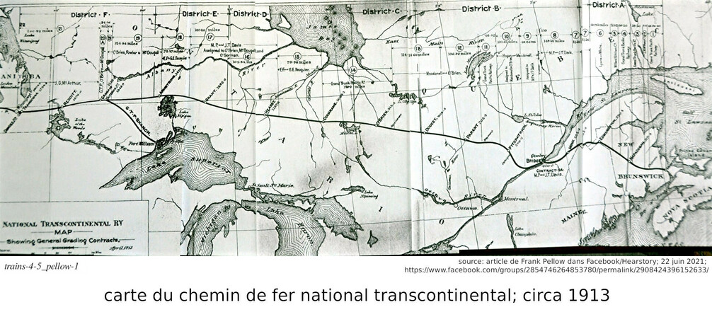 Pour terminer la section sur le chemin de fer National Transcontinental, j'ai quatres photos à partager. Celles-ci nous viennent de Frank Pellow, qui les as affichées sur Facebook/Hearstory (lien fonctionel seulement si vous êtes membre de Facebook/Hearstory). La première photo sagit d'une carte du chemin de fer National Transcontinental, de Moncton à Winnipeg, datant de circa 1913 (la NTR fut terminée en 1913, pris en charge presque aussitôt par la Canadian Government Railways...).