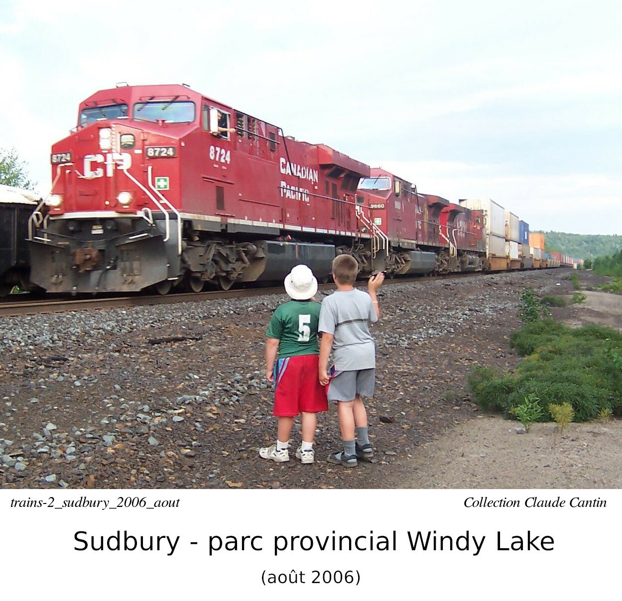 Pour le train de Hearst, j'était à la traverse de St-Pie X (route 11) lorsque j'ai pris cette photo. Le train de Sudbury passait le long du parc provincial Windy Lake: nous l'entendions de notre site.