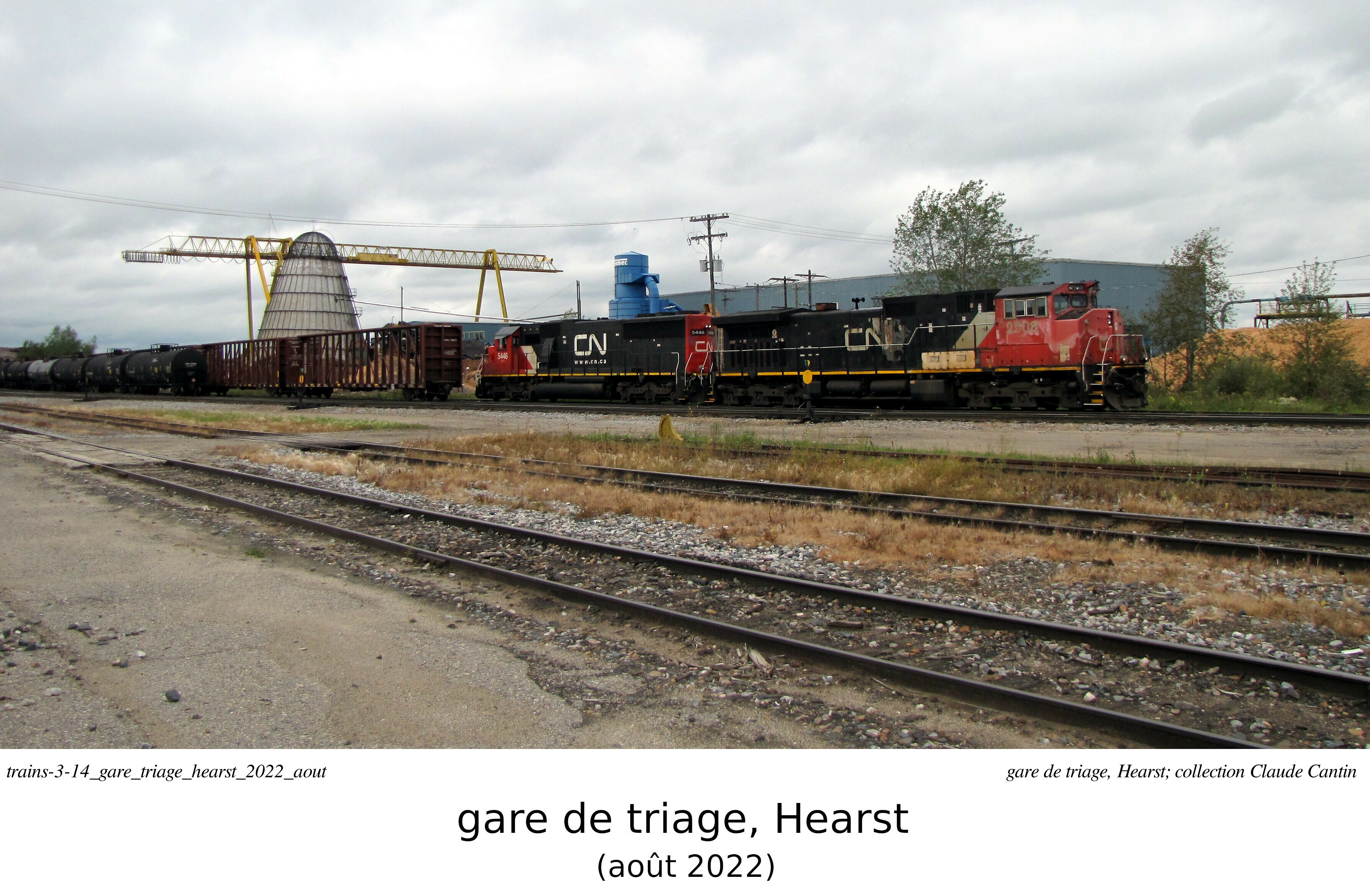 Shengzen est la ville chinoise la plus près de Hong Kong. Une gare spécifique est utilisée pour les voyageurs entre ces deux endroits. Le parcours se fait surtout sous terrain, en environ 40 minutes. Ce sont aussi des train roulant assez vite. En plus des trains entre les villes, nous avons utilisé les métros de Shanghai, Beijing, Nanjing, NanChang, Shenzhen. La plupart de ces métro ont été construit dans les années 2000 et sont très modernes, propres, et efficaces. Hearst n'a pas de métro ou de trains léger, donc je ne montrerai pas de photos des métros que j'ai utilisés dans le passé. Est-ce que j'ai mentionné que nous aimons les trains? :-) Mais assez de mentionner les trains du monde. Nous parlons de Hearst, et de sa gare de triage, tel qu'elle existe aujourd'hui. |