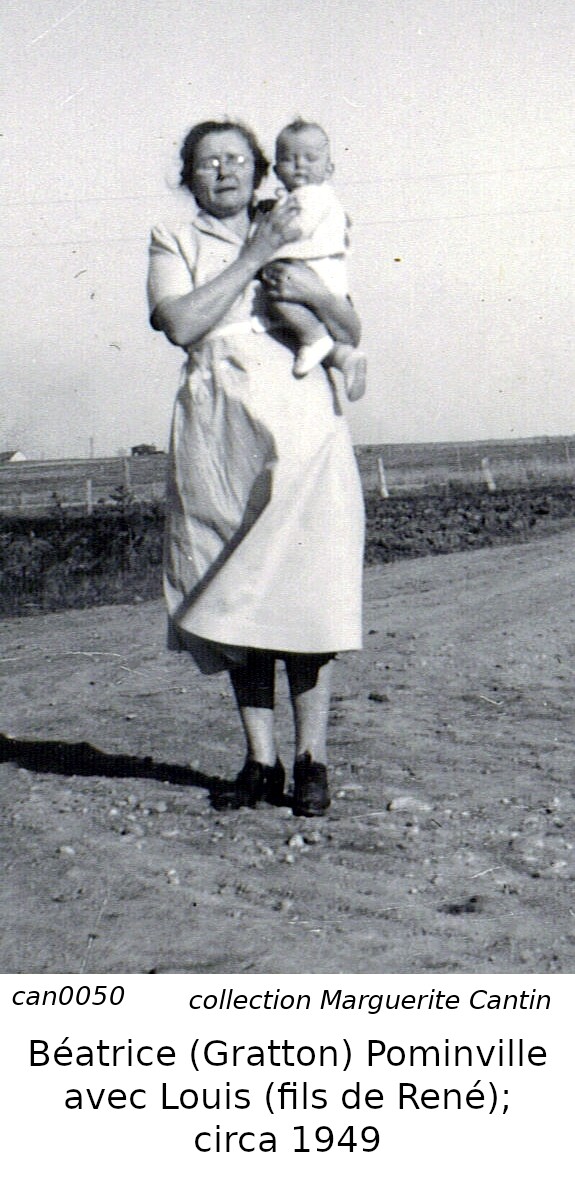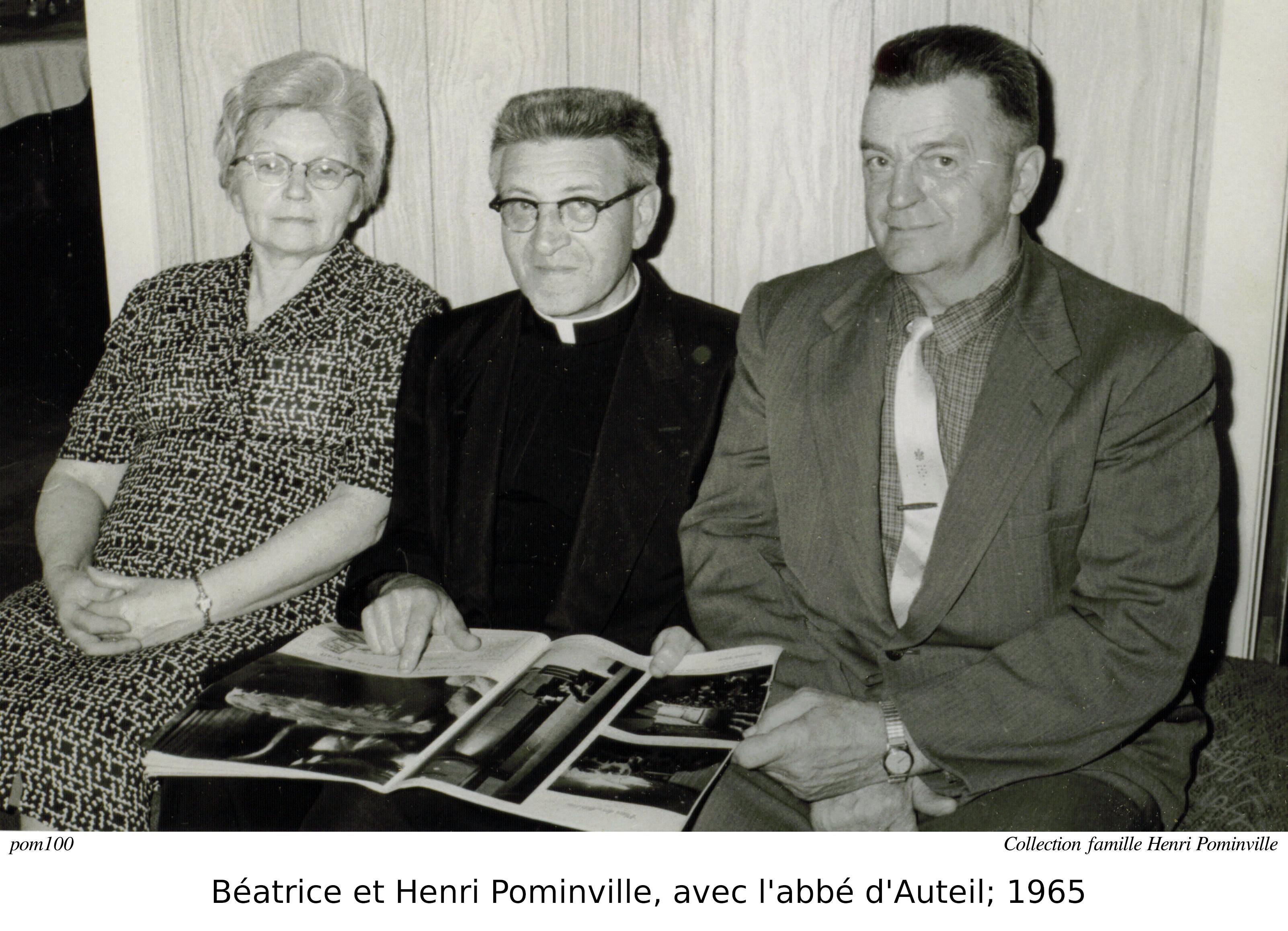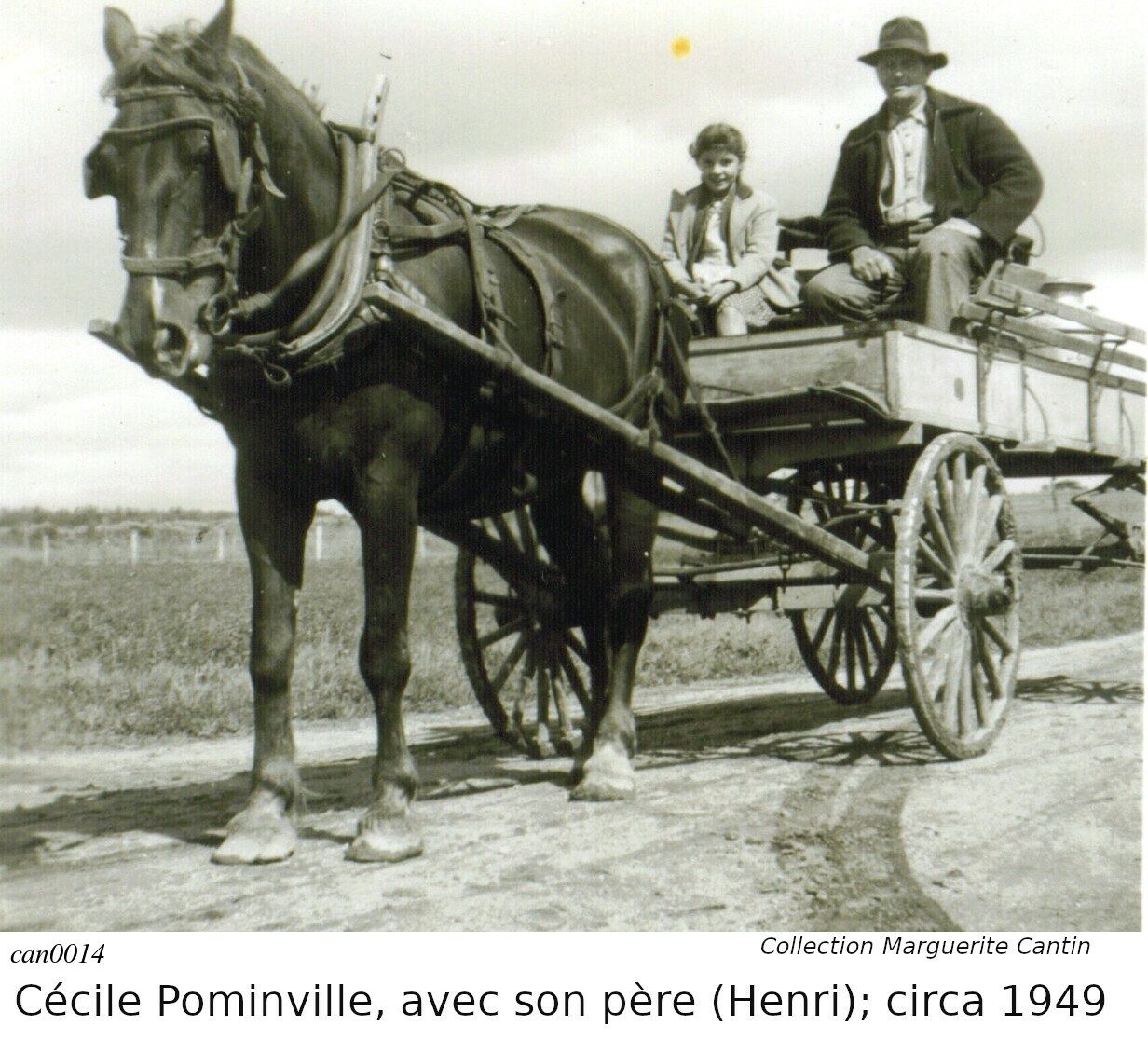 Nous avons une photo du moyen de transport principal utilisé par Henri Pominville, à la ferme: cheval et charette! Remarquez qu'il transporte des contenant de lait. Etait-il en route pour la laiterie? Au début des années 1960, après avoir vendu la ferme, Henri et Béatrice déménagèrent dans une maison à deux chambre à coucher dans le village; il nous raconte dans son entrenue, que c'est une maison que son garçon (René?) avait construit. Une annectode: depuis 1956, Henri avait un camion, mais il le laissa à la ferme. Même si il n'a jamais été diagnosé officiellement par un médecin, Henri souffrait d'épilepsie. Ma mère et Cécile s'en souviennent très bien. C'est sa cousine, infirmière à Oka, qui le diagnosa. Ses crises étaient très courtes, comme la plupart de ceux qui souffrent d'épilepsie, et immédiatement suivant celles-ci, il était souvent désorienté, mais surtout drainé.