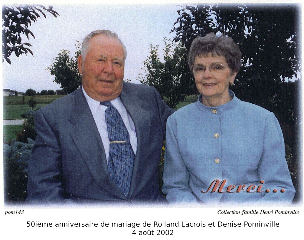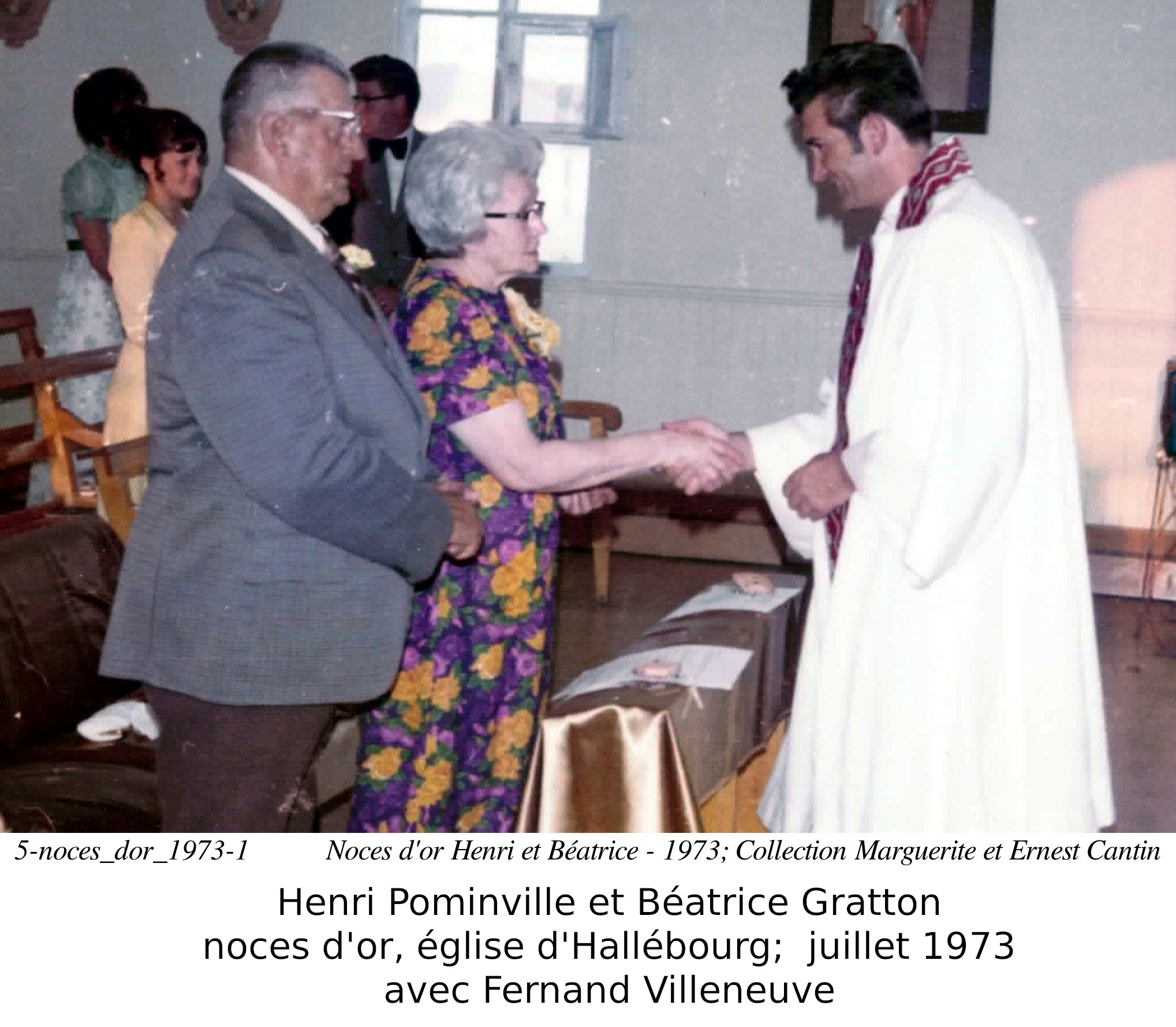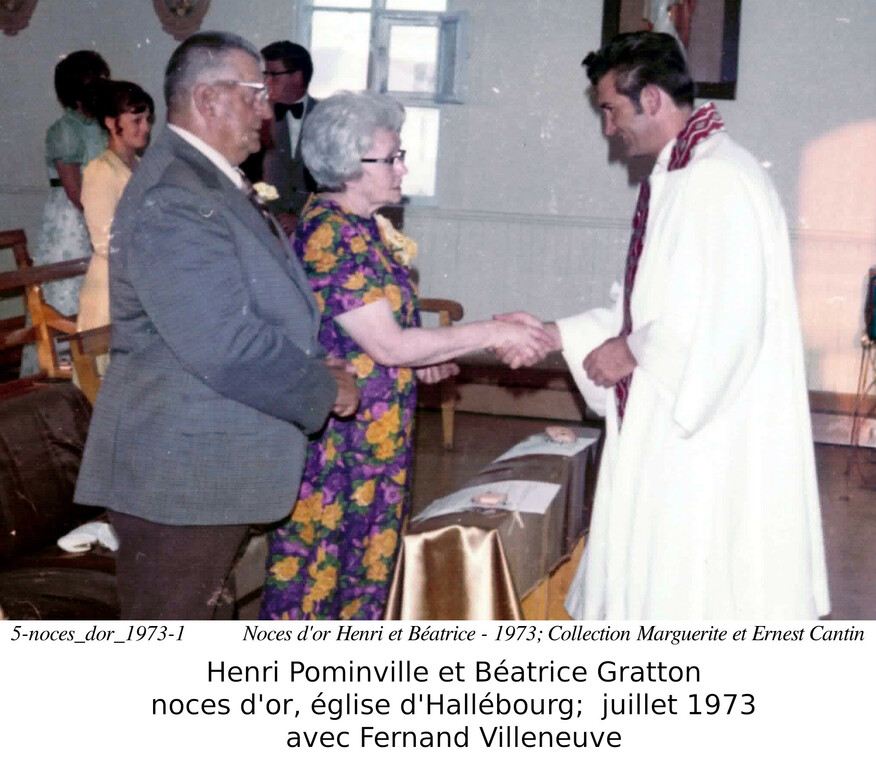 Ils célèbrent leur 50ième anniversaire de mariage le 20 juillet 1973, dans l'église Sainte Anne d'Hallébourg, officié par le père Fernand Villeneuve.