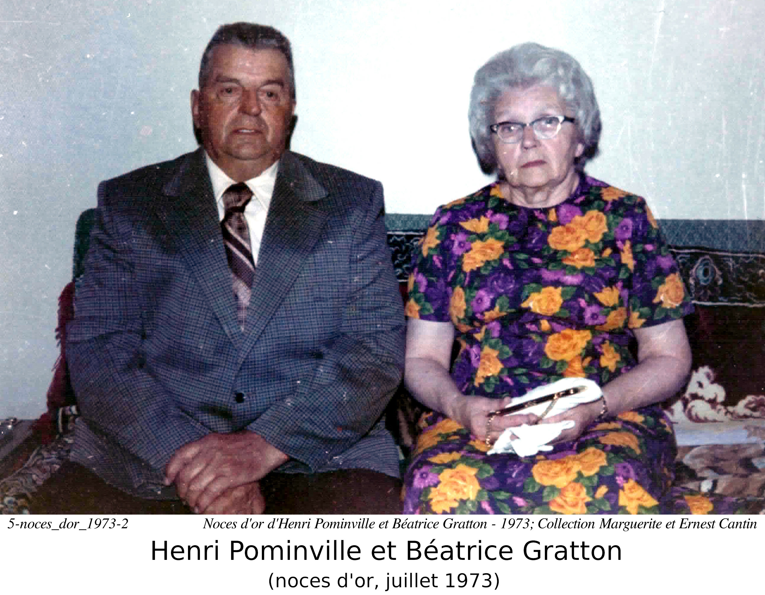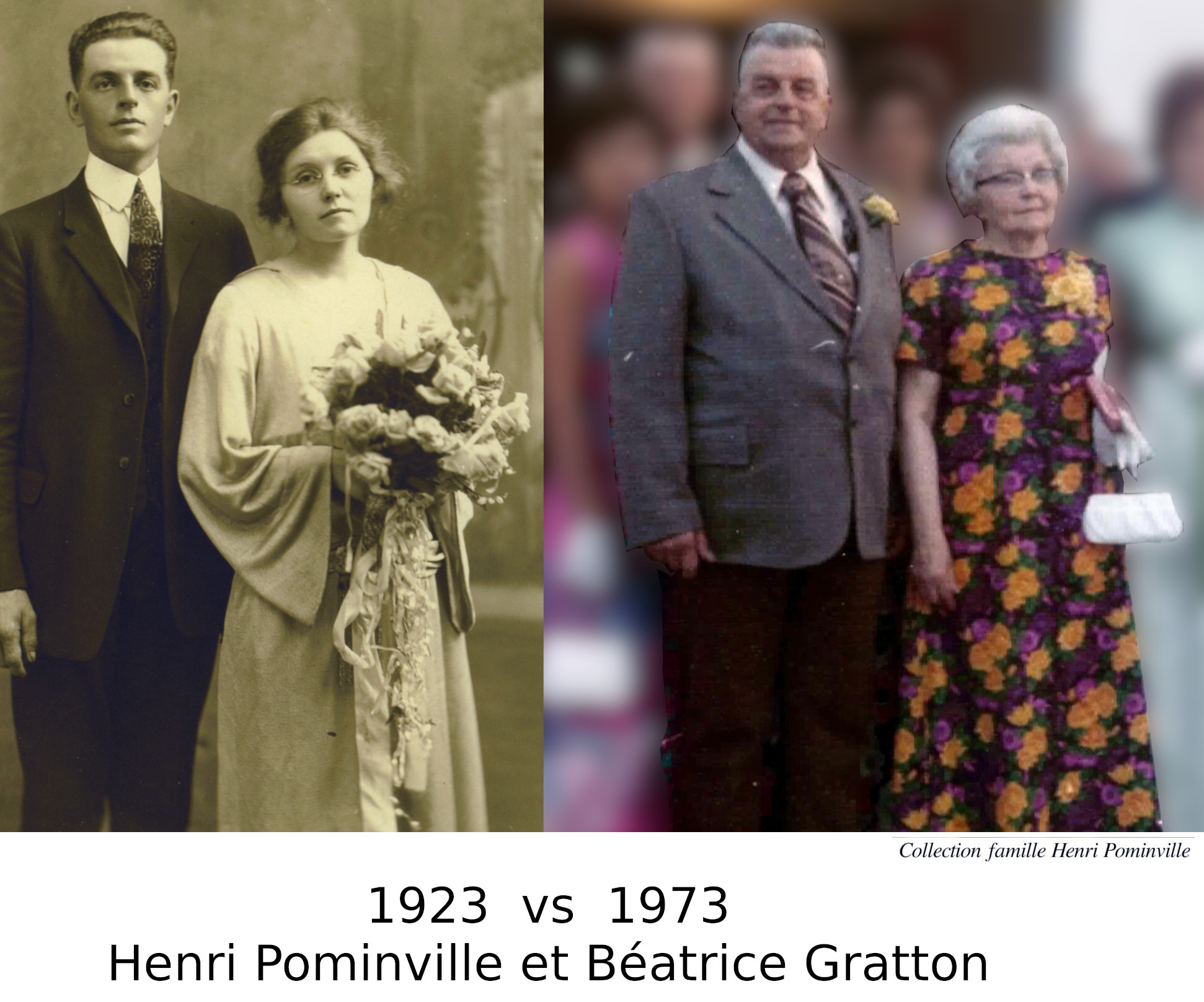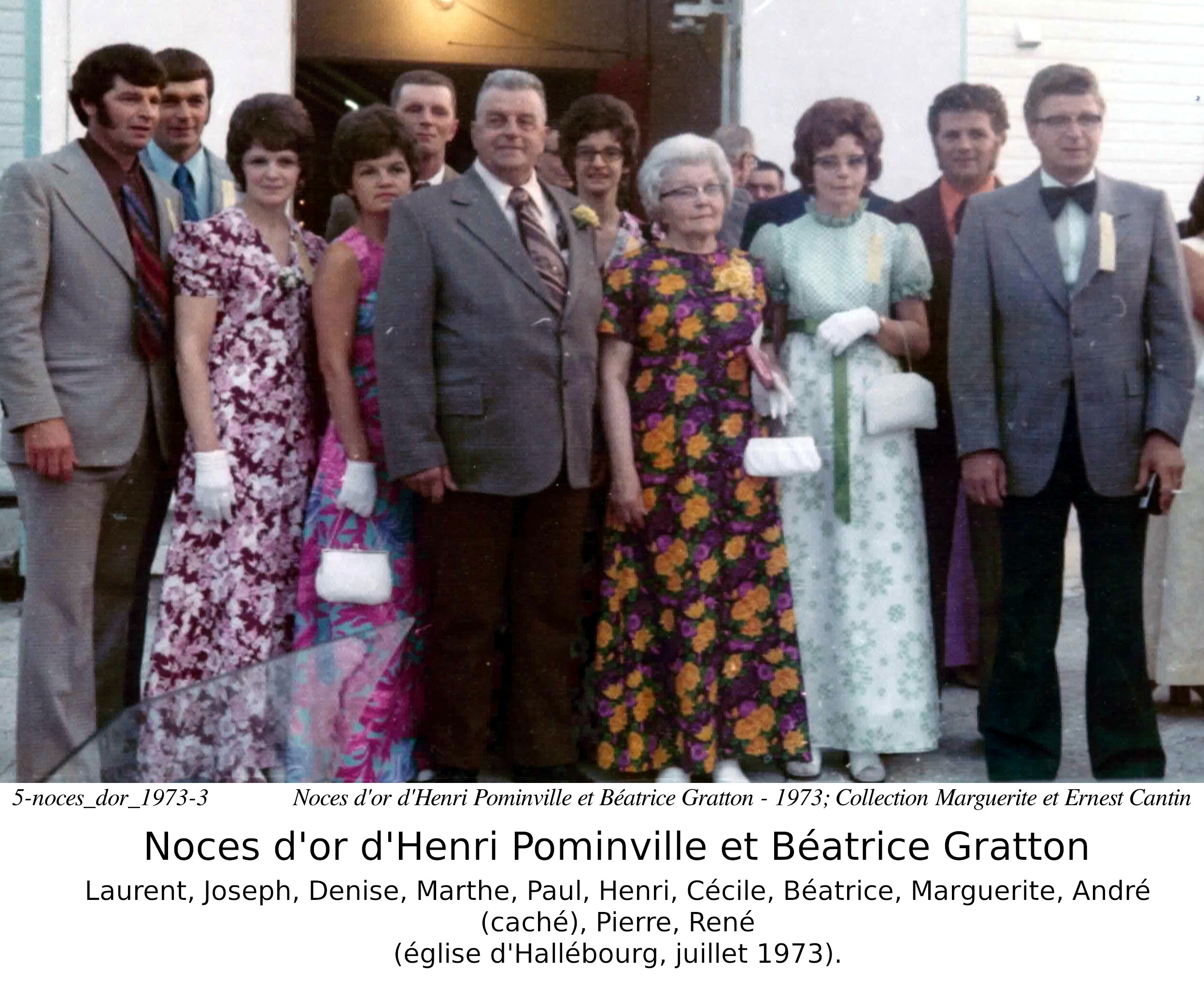 Ils célèbrent leur 50ième anniversaire de mariage le 20 juillet 1973, dans l'église Sainte Anne d'Hallébourg, officié par le père Fernand Villeneuve.