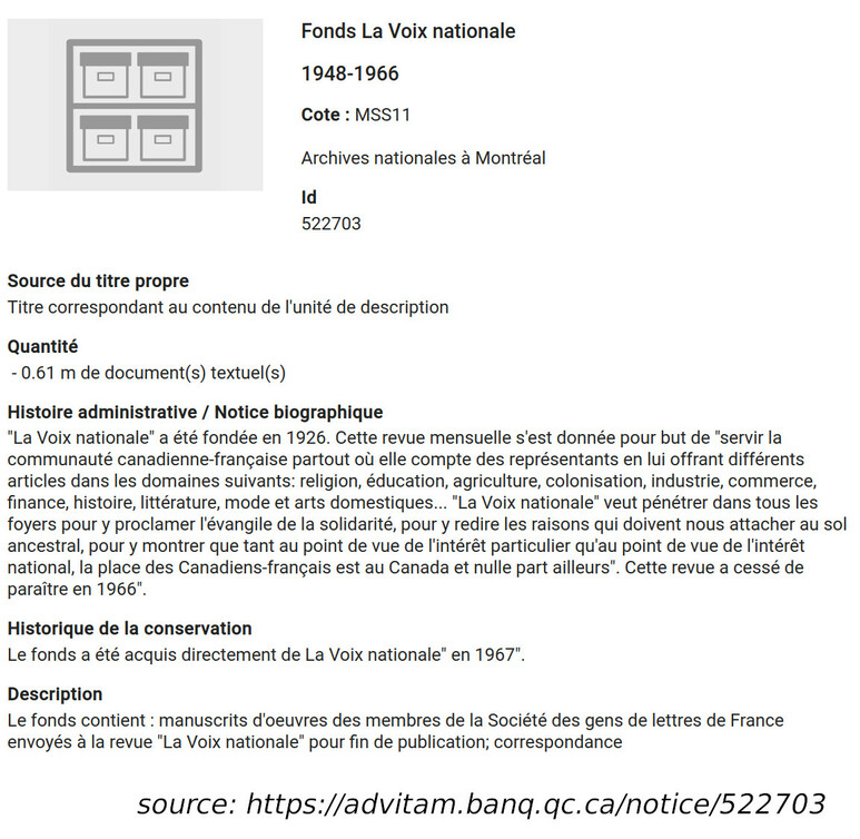 En même temps, la revue mensuelle "La Voix Nationale" encourageait les Québécois à aller s'installer au nord de l'Ontario, où des terres arables étaient mises à la disposition des colons. l'Eglise Catholique française encourageait fortement ses fidels à y aller, afin de s'assurer la colonisation du nord de l'Ontario par les canadiens-français, avant que d'autres groupes s'approprient le nord de l'Ontario.