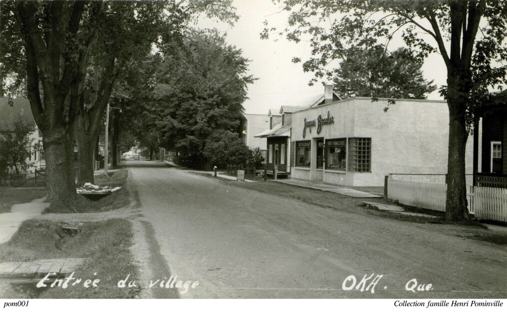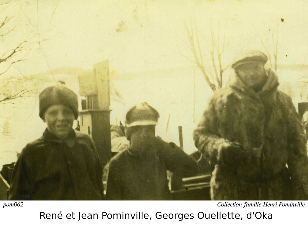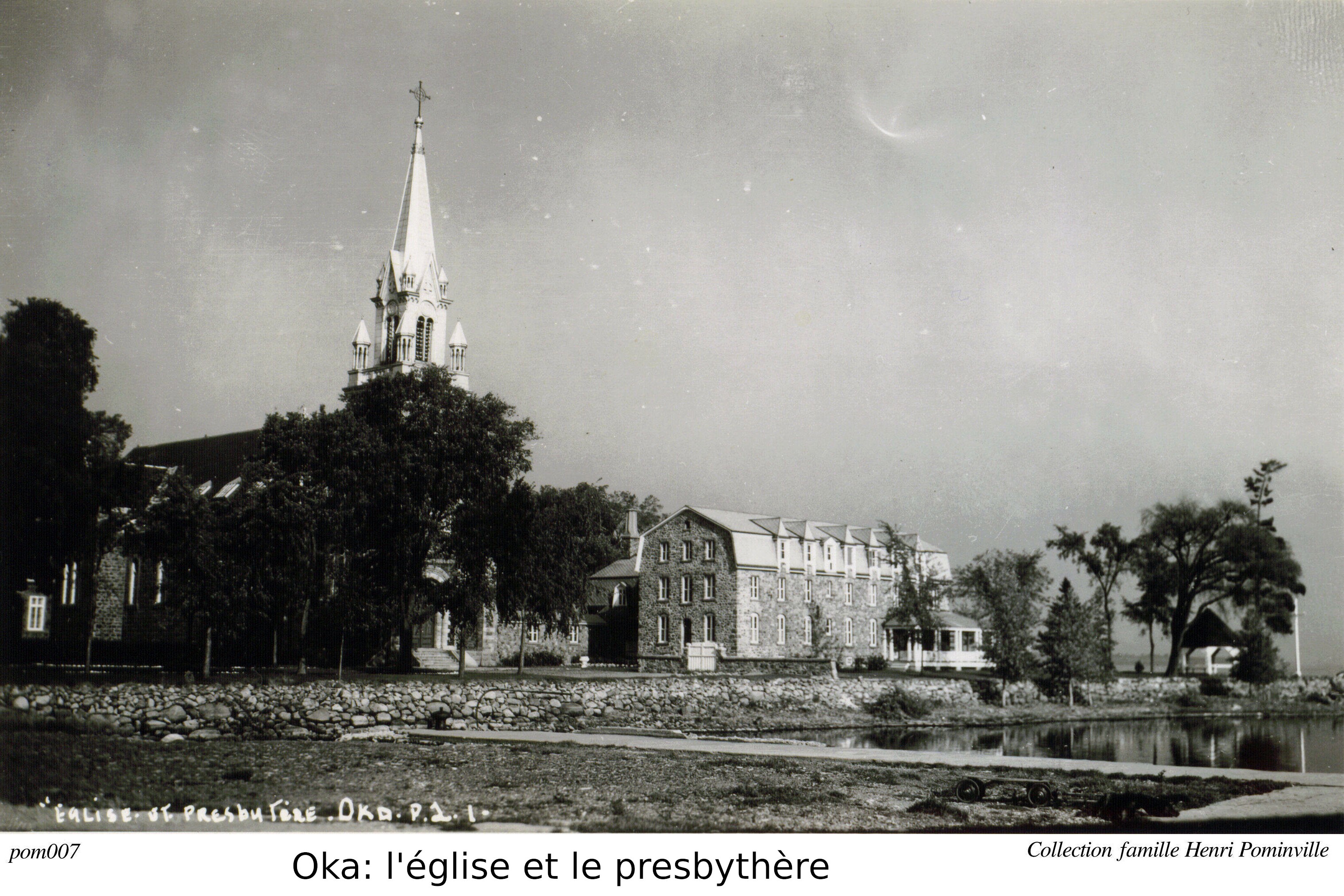 Le village d'Oka, situé au début du Lac des Deux Montagne, où la rivière Outaouis se jette dans le fleuve St-Laurent, était bien établi, avec une grande église, un grand presbytère, et même une école d'agriculture. Je vous en ai montré des photos, ci-haut. Marguerite [Pominville] Cantin nous racontait que les chemins, à Oka, étaient de graviers et étaient entretenues été comme hiver. Il était facile de visiter les voisins et la parenté d'Oka et de St-Benoît, à tout temps de l'année... Les préparations pour la vente de la terre familiale à Oka furent organisées. Un encan fut choisit comme méthode de vente. Noël Pominville (neveu d'Henri) qui avait 16 ou 18 ans à l'époque, en fut le secrétaire. Ce même Noël Pominville deviendra un pilier de la société d'Oka. Il fut maire de la Paroisse d'Oka, 25 ans plus tard, de 1961 à 1973, et de 1977 à 1979. Je me souviens qu'il soit venu nous visiter à Hearst, dans les années 1970.
