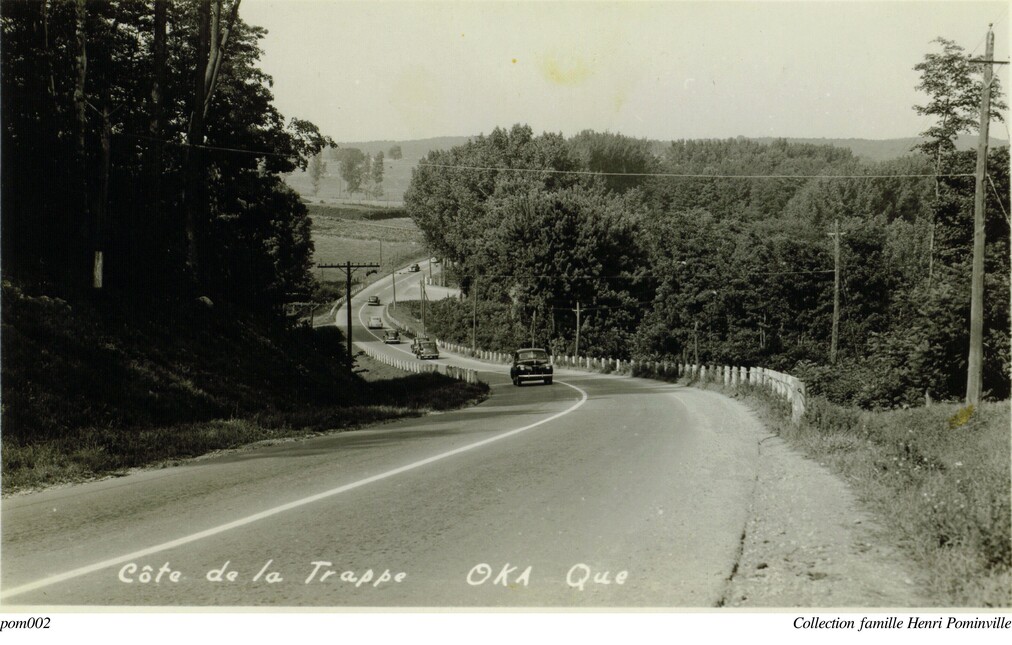 Côte de La Trappe. La deuxième est celle de la "Côte de La Trappe". "La Trappe" est une petite agglomération; on pourrait dire un petit village sur le chemin d'Oka. C'est aussi où les trappiste, cette congrégation religieuses stricte, s'était établie à Oka en 1881 (d'où le nom "La Trappe"). C'est eux qui ont fondés l'Institut Agricole d'Oka, qui a formé plusieurs agriculteurs et agronomes dans cette région, entre 1930 et 1960.