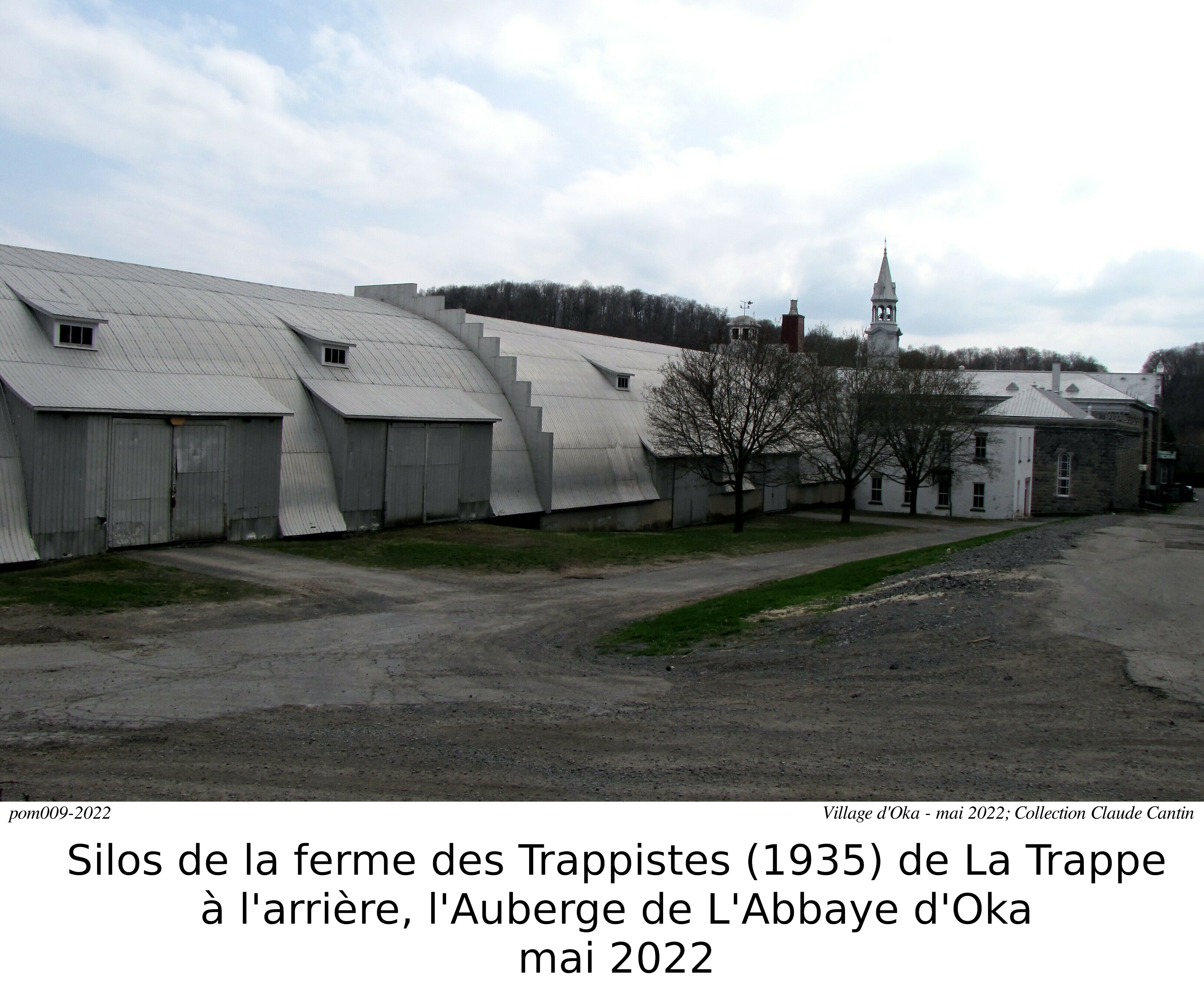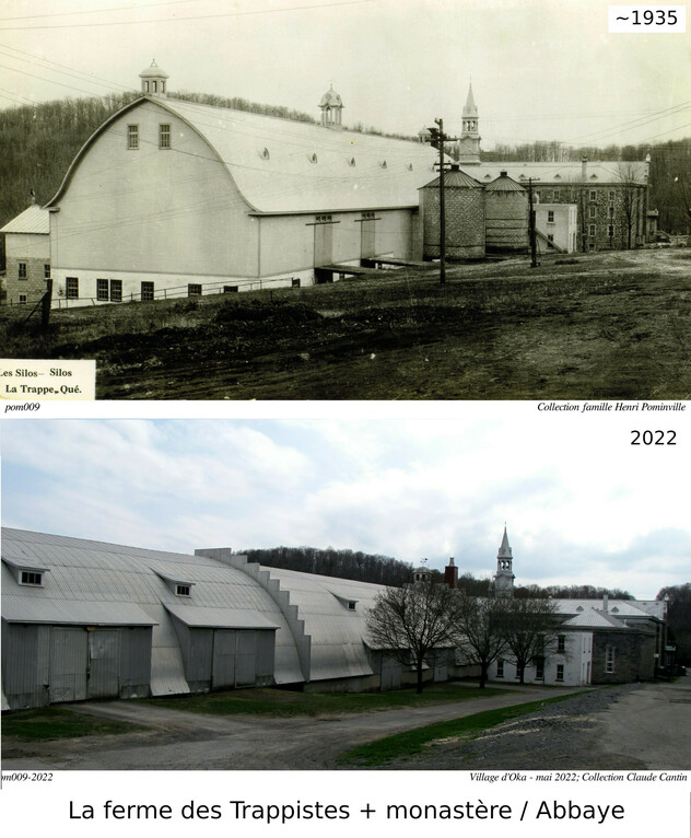 Les silos de la ferme des trappistes. En arrière, le monastère (1935, 2022); Ce complexe était connu de mes grands-parents comme étant la ferme des trappistes à La Trappe.