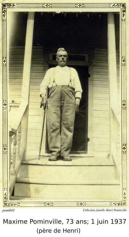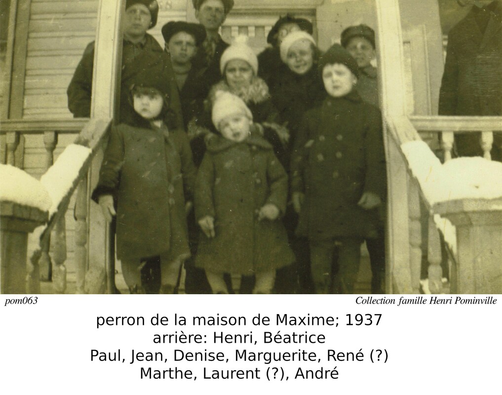 Note: la plupart de l'information nous vient de ma mère, Marguerite Cantin, mais aussi de Cécile Proulx, et des photos de famille de la famille Pominville. L'enregistrement de l'entrevue avec Henri Pominville et Béatrice Gratton, fait en 1974, gracieuseté de Sylvio Pominvile (petit fils d'Henri et de Béatrice).